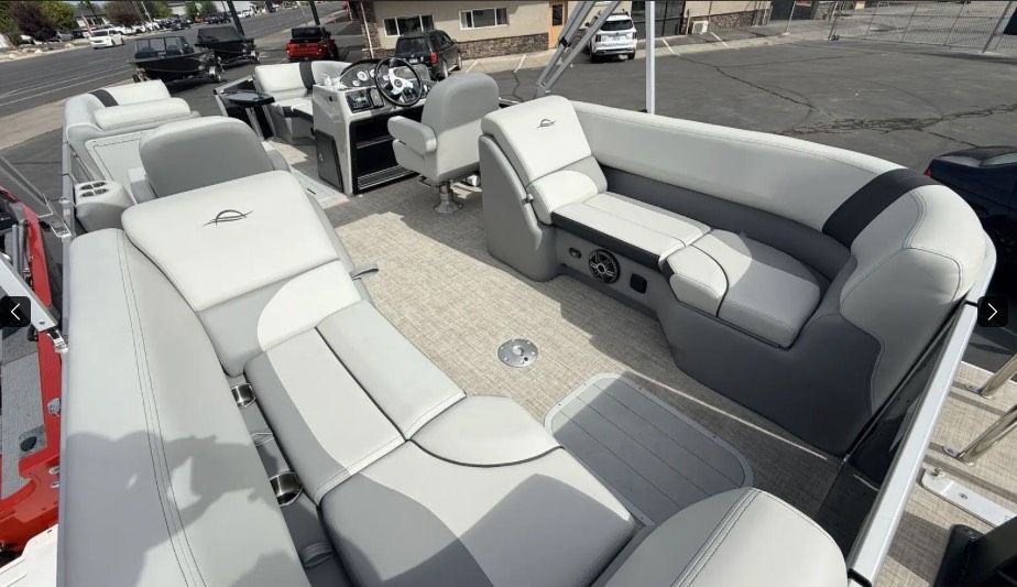 What Makes the 322RC Truly Exceptional Power & Performance : The 250HP Yamaha motor gives you serious speed and responsiveness, ideal for towing, wake-sports, or fast lake runs. Ski Tow Bar Included : Ready for all your towable toys from the get-go—tubes, skis, wakeboard—you name it. Generous Size & Capacity : Measures 22’6″ on the deck (package length ~31’6″), with overall width/beam 8’6″. Comfortably holds up to 11 people. Ample Fuel Capacity : 46 gallons of fuel onboard so you can go farther, play harder, and spend less time stopping. High-Quality Build & Attention to Detail : • Roto-molded furniture with rain-drain channels under cushions (keeps everything dry & clean) • Wrap-around lounges with under-seat storage—plenty of room for gear, coolers, toys, towels • Heavy-duty logs (23″×25″ “Jumbo” performance logs) with closed-cell flotation foam—solid flotation and stable ride • Wide-body design (8’6″ beam), premium deck & structural support (deck extrusions, through-bolts)—built for durability & smooth water time. • Comfort & convenience: Tilt steering, power assist hydraulic steering in higher trims, deluxe lounge layouts, built-in cooler under the bow corner, mood & courtesy lighting, full boarding ladder. Exclusive Offer - Only 2 Left of the 2025s We have only two of the 2025 322RC SunCatcher pontoons remaining—and they’re priced to move. If you want one with premium power, ski gear, plush seating, and a luxury finish, NOW is the time. Deals this good don’t last. Why You’ll Love Buying From Us - Immediate availability—skip the long wait for build orders. Fully loaded options already included: no surprises, just fun. Trade-ins & financing arranged easily. Don’t miss out—message me/talk to our sales team today to reserve one of these last two 2025 322RCs. Your summer is calling.