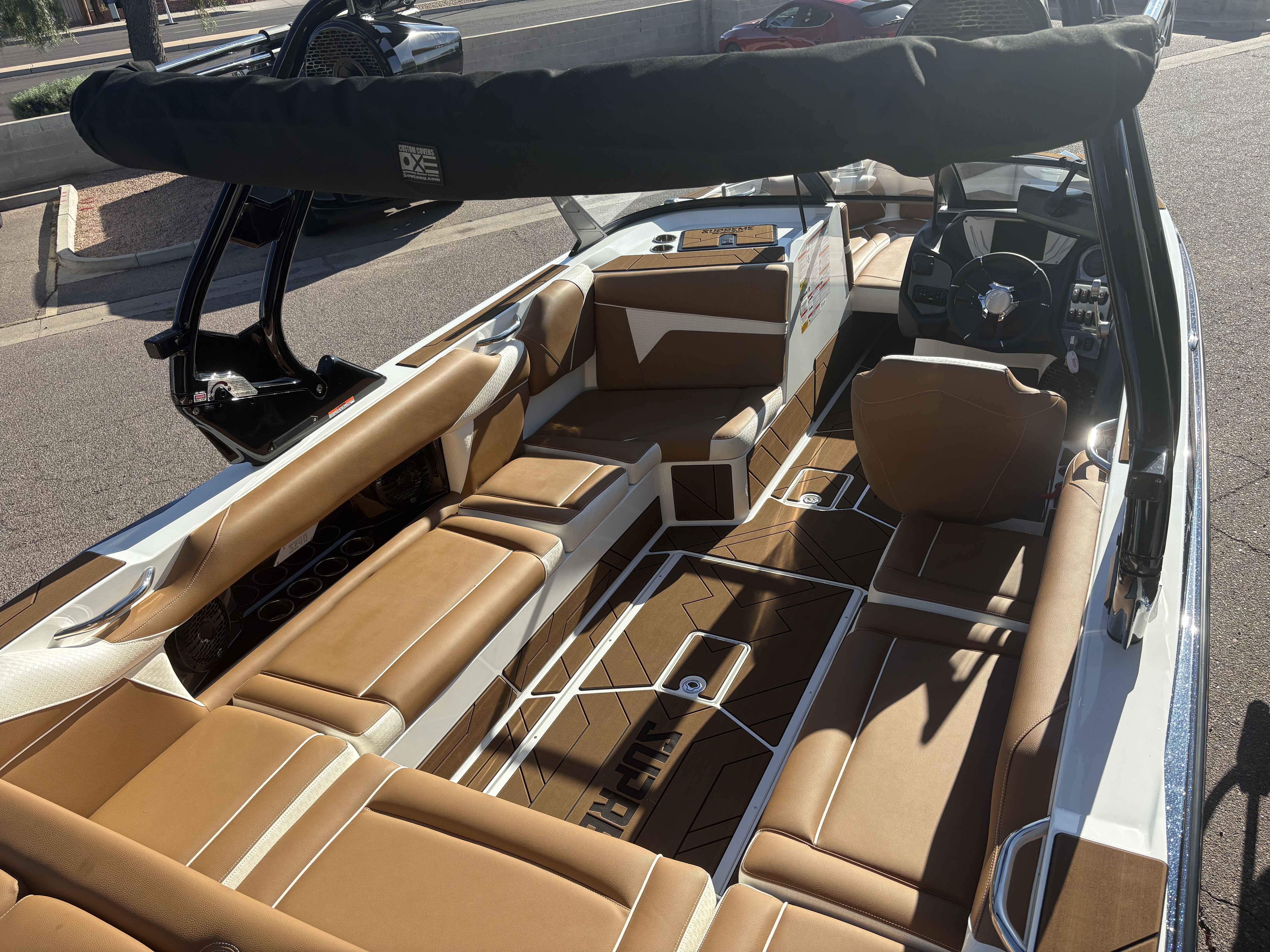 The S240 is the big boat you didn’t know you could afford. This 24-foot Supreme accommodates up to 16 people and offers as much as 4800 pounds of ballast. Your heart will beat a little quicker when you try the new standard Fast Mover Ballast system, with its 13.5-gallon per minute SeaFlo pumps. This new system can fill ballast up to 68% faster. Built on the EZ-V Hull, the S240 has long, pushy waves and a level running attitude that creates driver visibility. The S240 is the perfect choice for beginning wake surfers because you can build your skills one wave at a time with the available QuickSurf System that offers waves to rival every other premium tow boat offering. It’s the boat with the premium presence at a practical price.