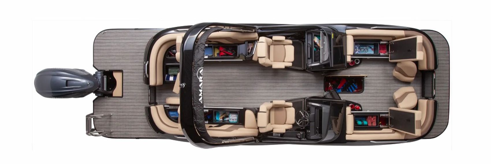 • Abundant storage throughout for gear, coolers, and personal items