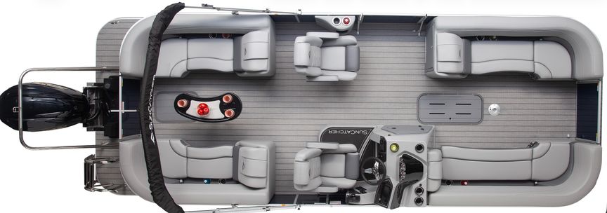 The SunCatcher 324 RC delivers an exceptional balance of luxury, performance, and versatility, making it an ideal choice for families, entertaining, and long days on the water. Powered by a Yamaha 250 HP outboard and equipped with all standard SunCatcher features, this pontoon offers smooth cruising, confident handling, and premium comfort throughout.