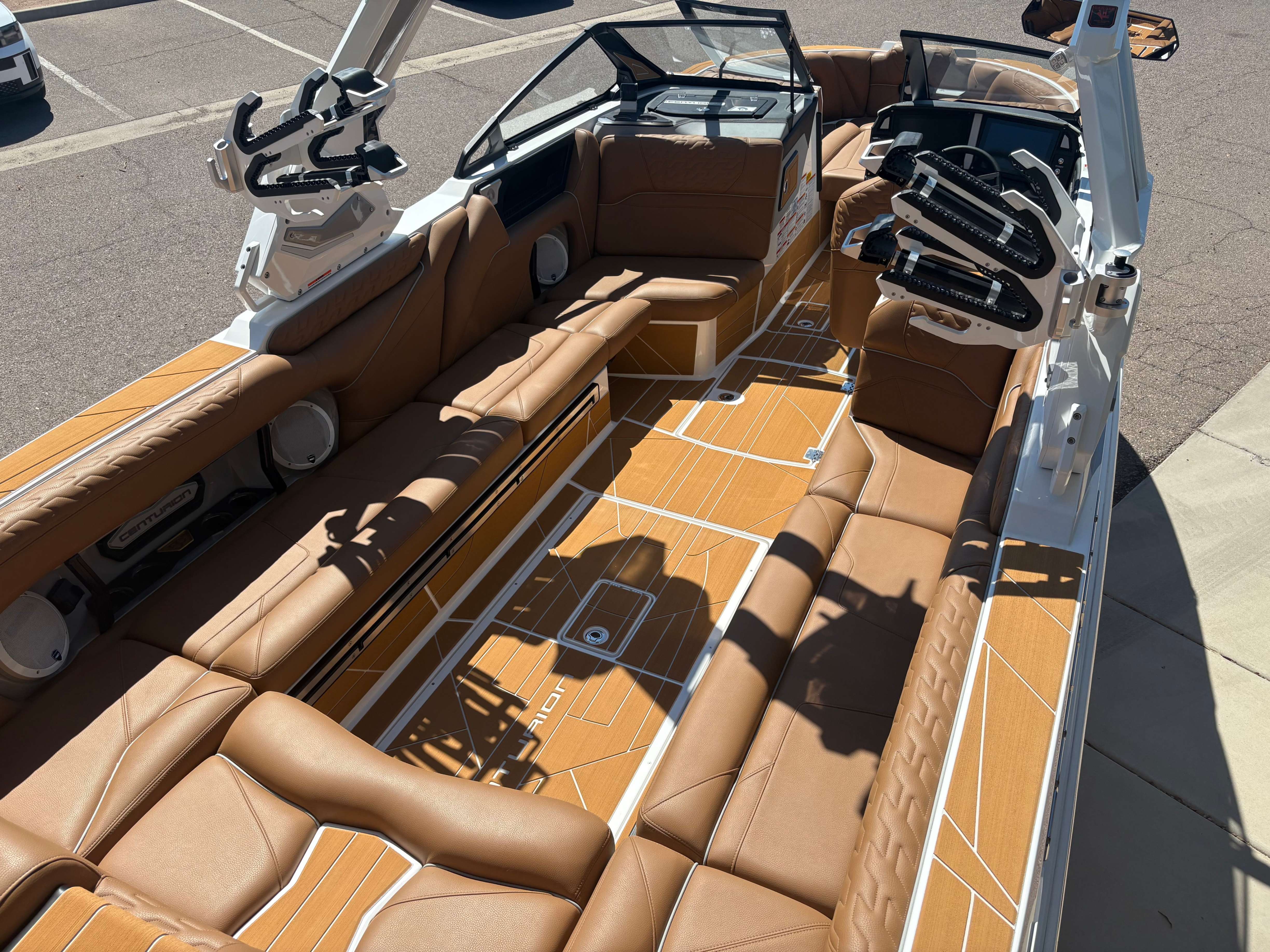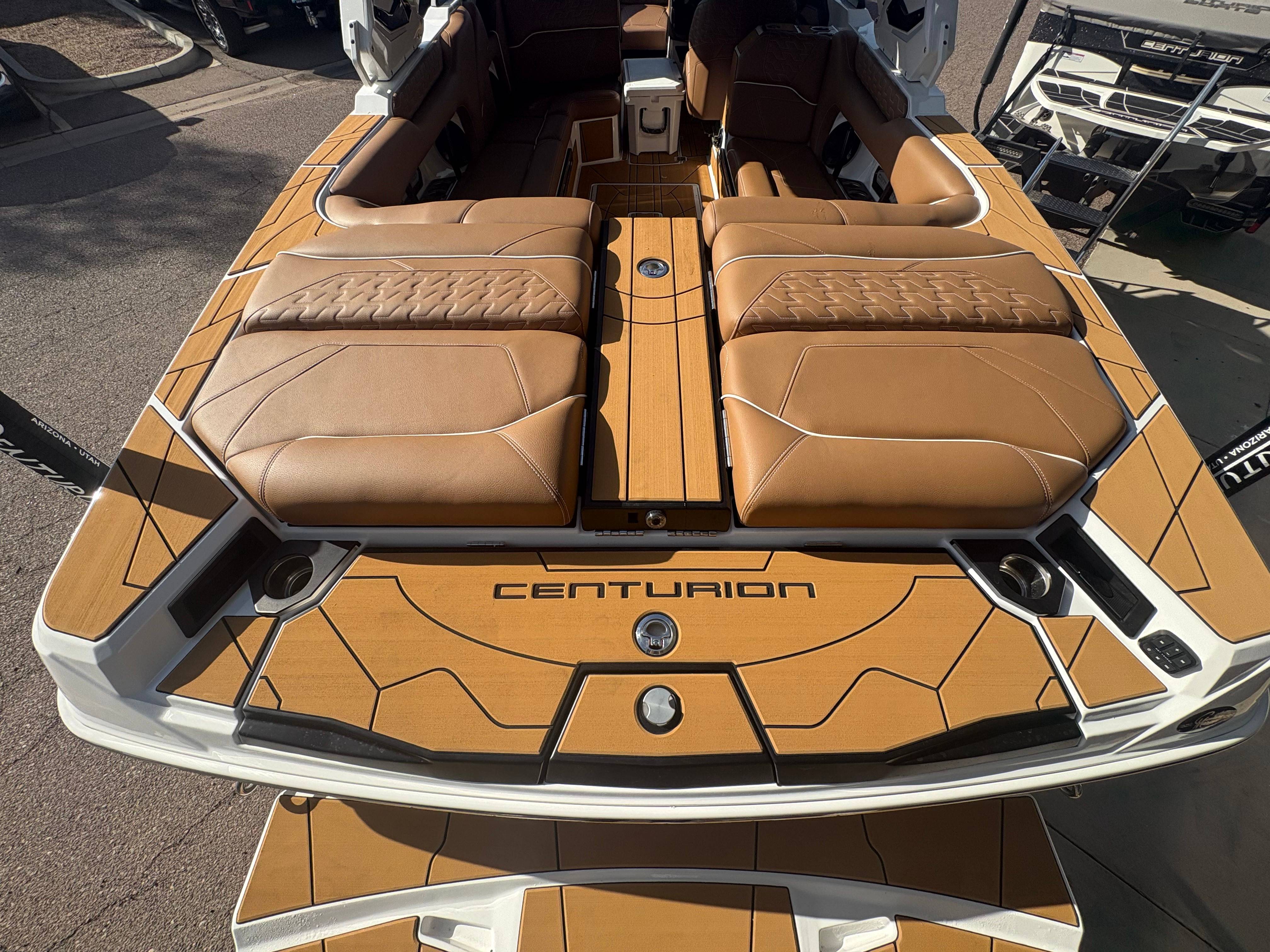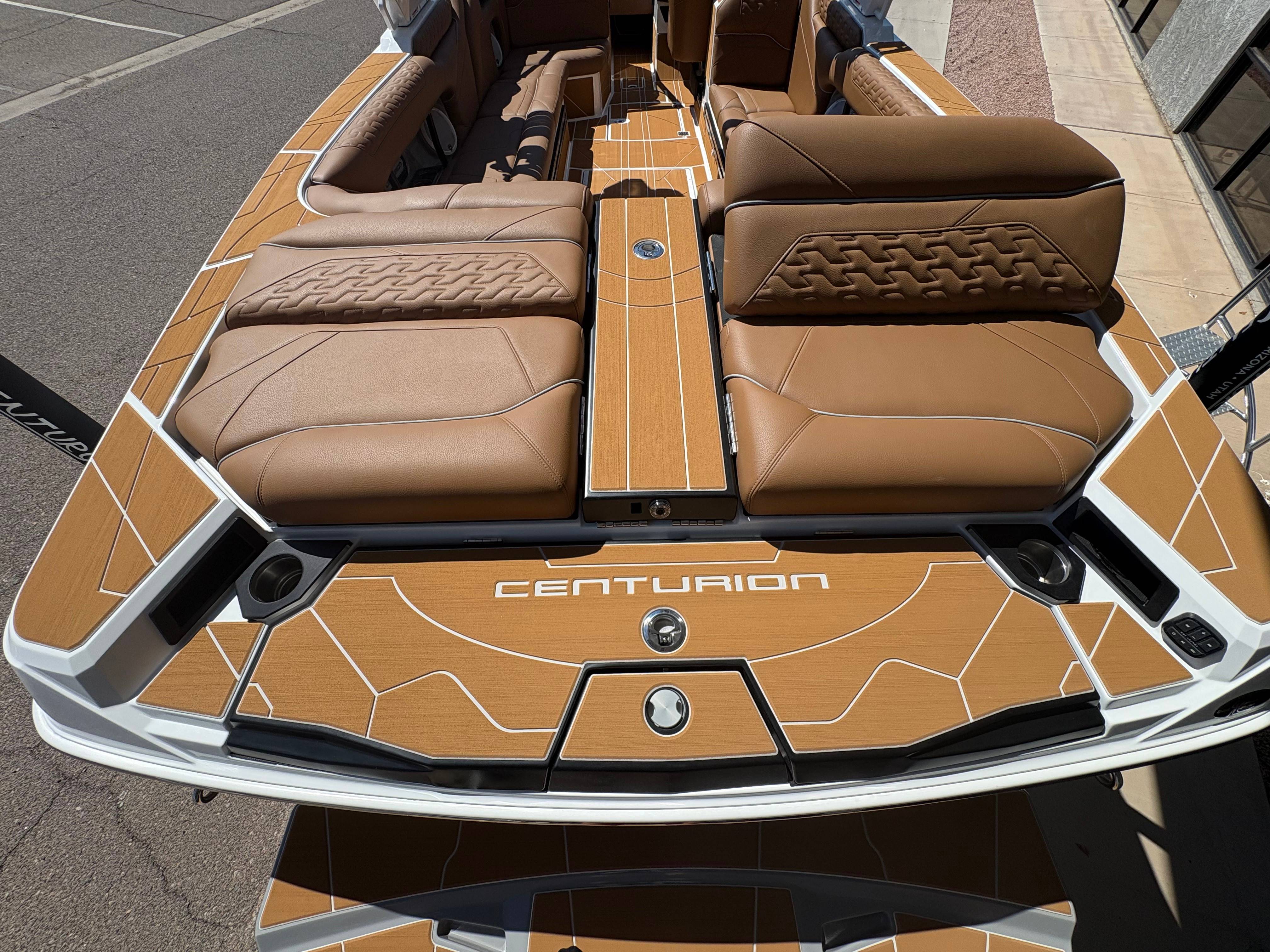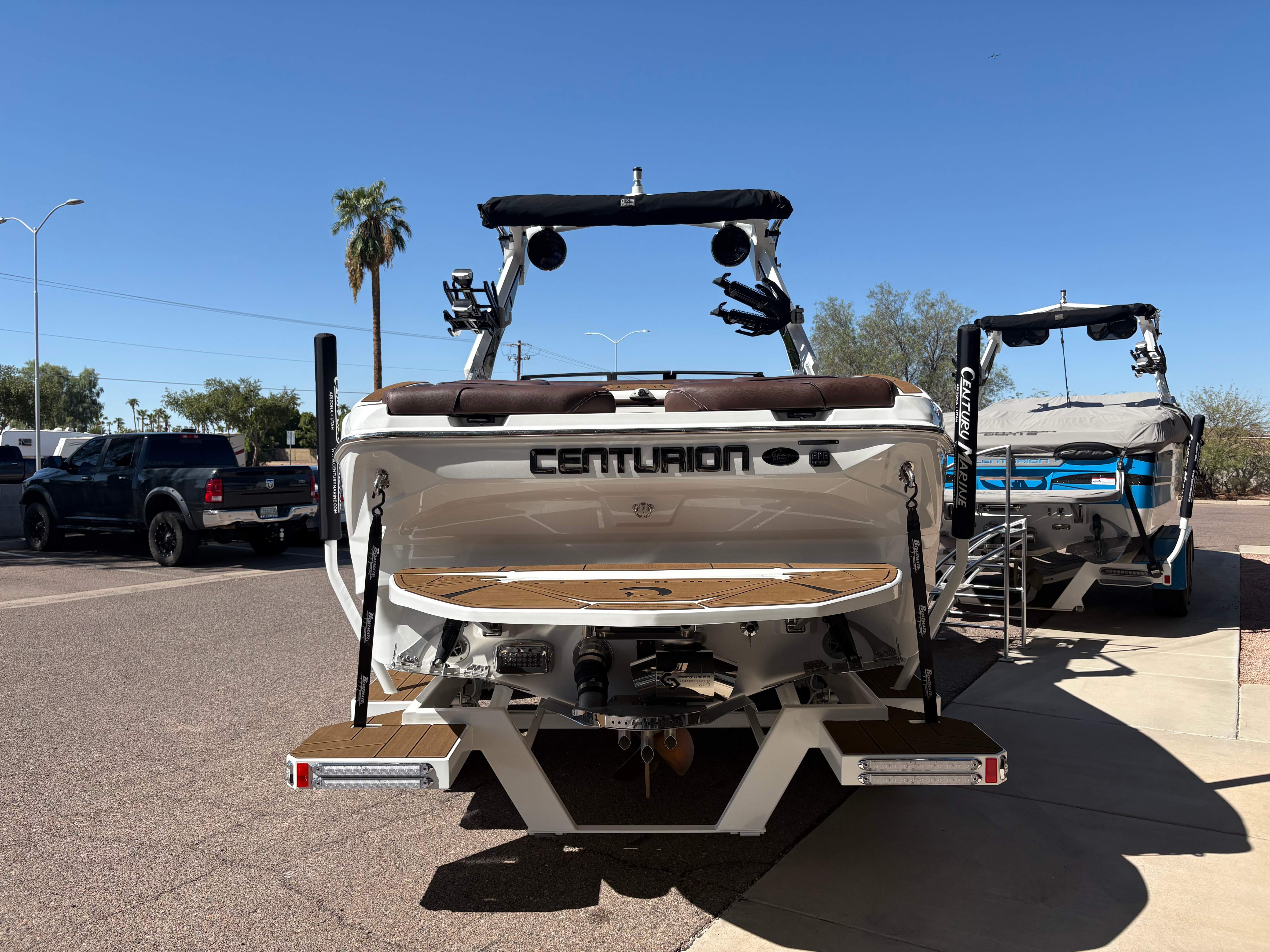 2026 Centurion Ri230 - Mocha/Mocha The Ri230 hits that sweet spot for the wake sports enthusiasts, whether professionals or beginners, seeking luxury in a 23-foot size. Its responsive handling, world-class waves, wakes, and ride are wrapped in comfort. Features: - Up to 5,400 LBS of ballast - Powered by PCM 6.2L ZZ6 - Predator Power folding Tower - Ram Fill 2.0 technology for rapid ballast filling and draining - Efficient fuel consumption with live fuel economy readouts - Transom Remote -Centurion CoverFire Sound System by Roswell - Bombshell 2.0 Strapless Board Racks - Bow and Transom Ballast Bags - All CoolTouch Vinyl - Interior and Underwater RGBW Lights -Front Boarding Ladder w/ Handrails GENERAL SPECS Length: 23' Beam: 102" Draft: 36” Factory Ballast: 5,400 lbs Fuel Capacity: 81 gal Weight: 5,500 lbs Weight on Trailer: 7,000 lbs Seating Capacity: 14 People + Max Ballast Century Marine : (480)-835-9134 3302 E Main St Mesa, AZ 85213