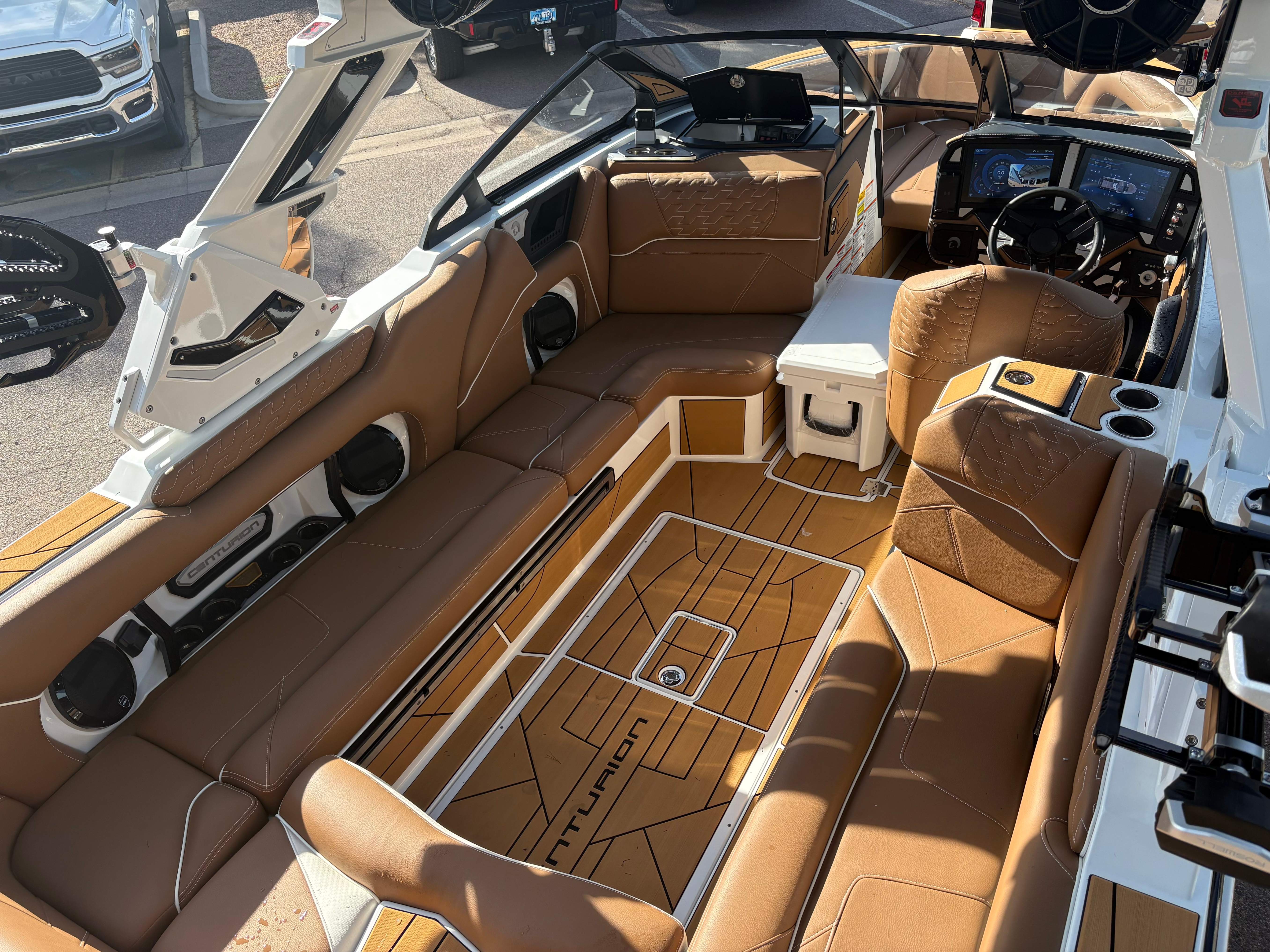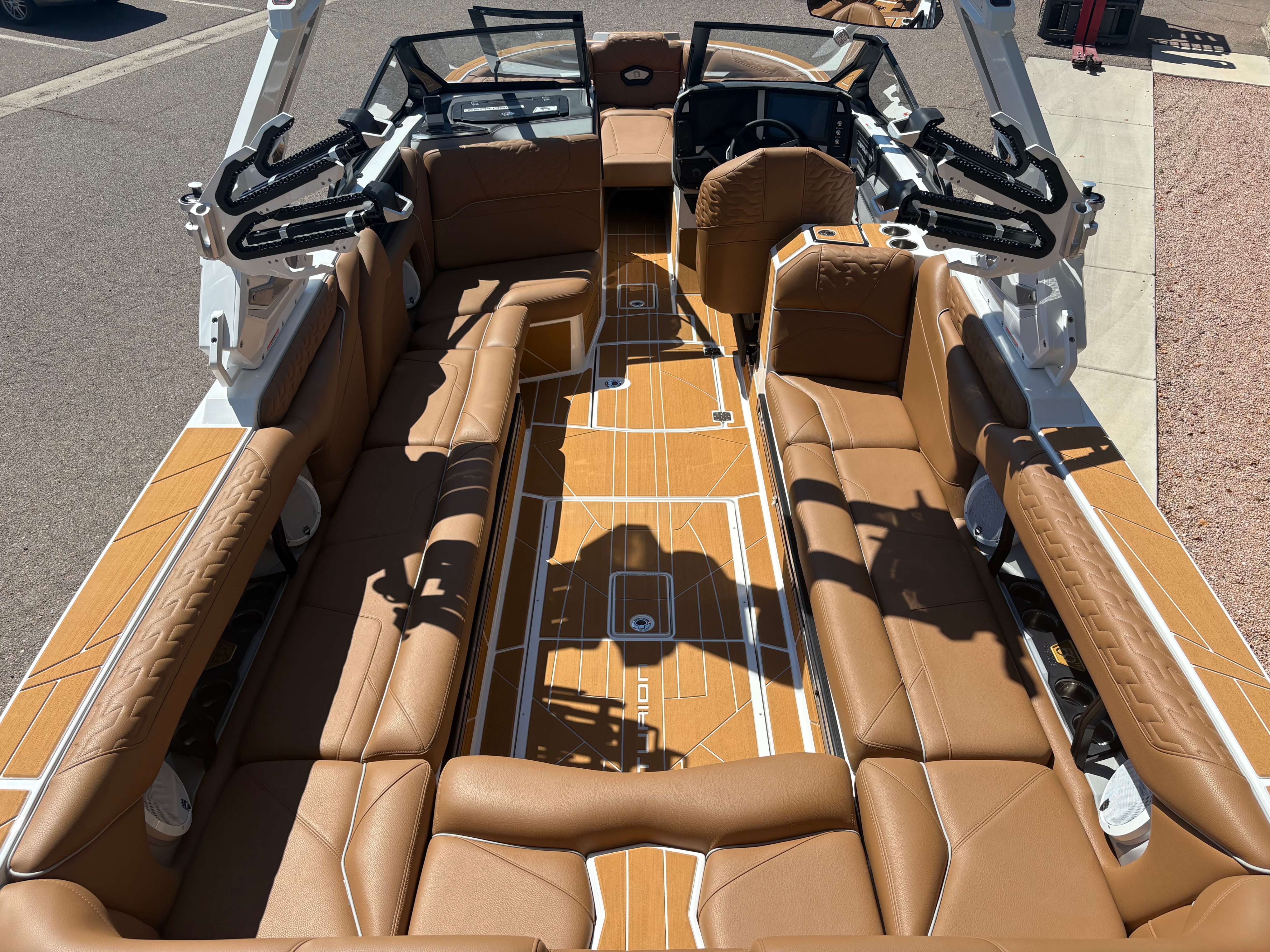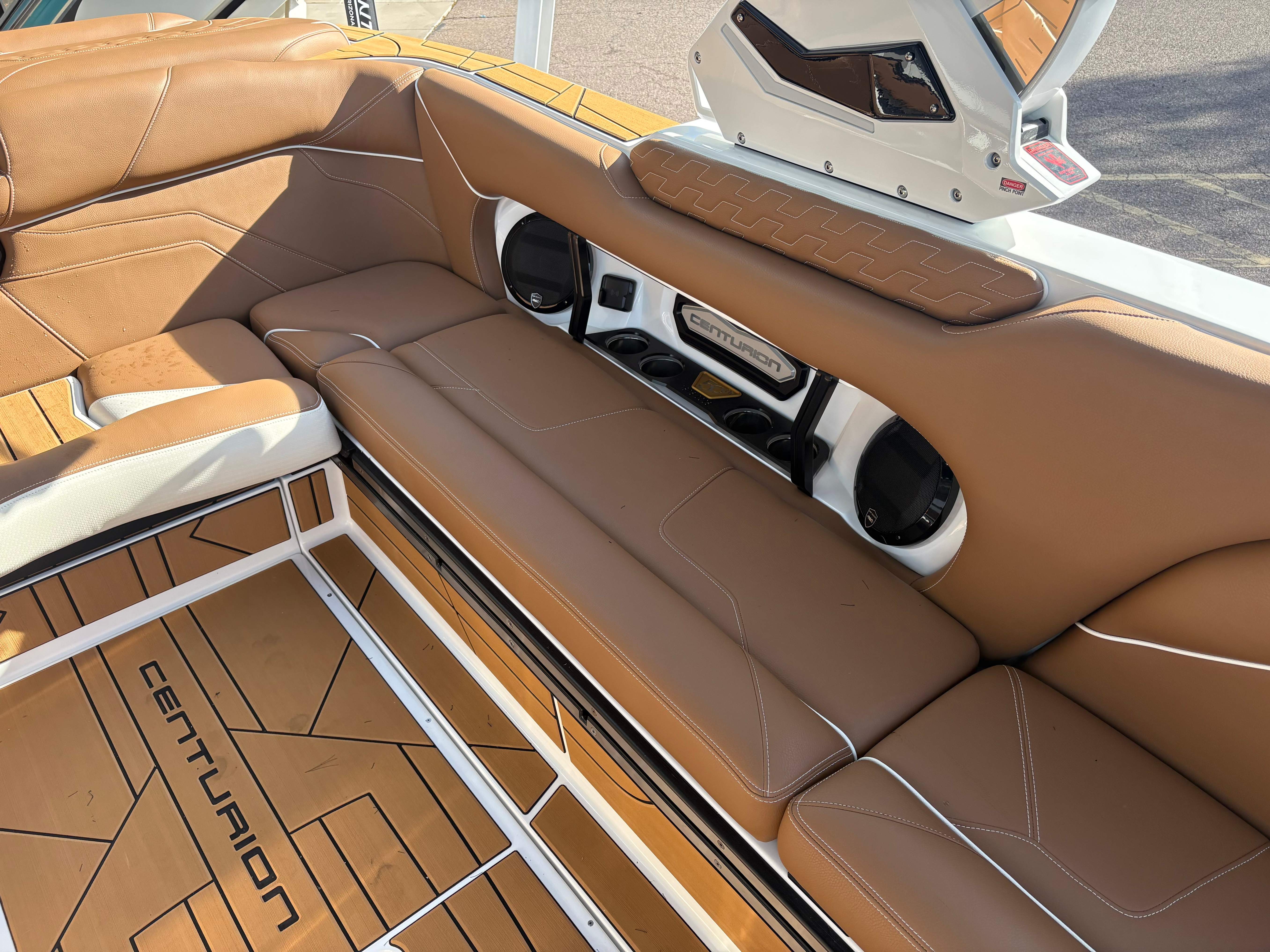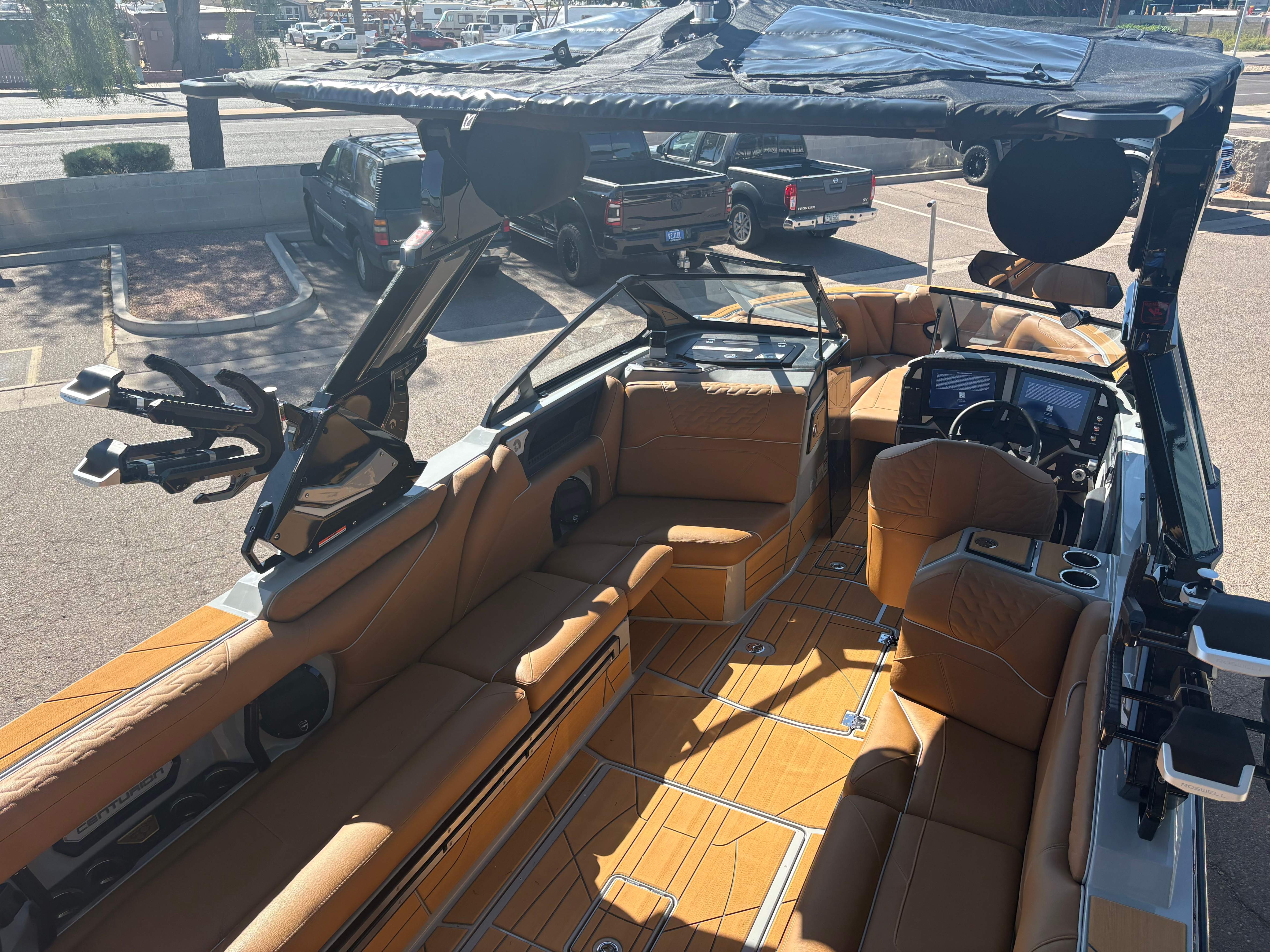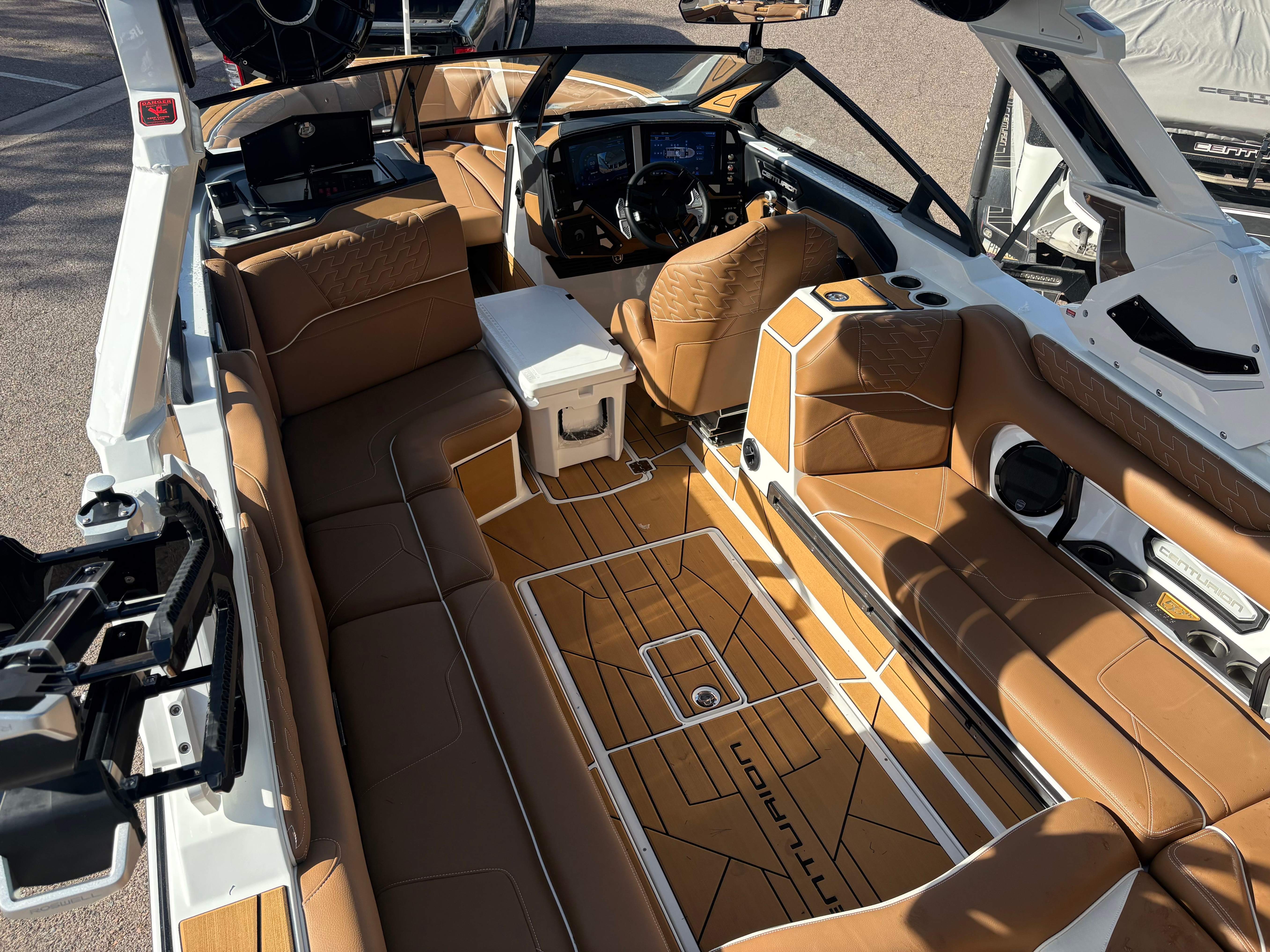 2026 Centurion Ri230 - Mocha/Mocha The Ri230 hits that sweet spot for the wake sports enthusiasts, whether professionals or beginners, seeking luxury in a 23-foot size. Its responsive handling, world-class waves, wakes, and ride are wrapped in comfort. Features: - Up to 5,400 LBS of ballast - Powered by PCM 6.2L ZZ6 - Predator Power folding Tower - Ram Fill 2.0 technology for rapid ballast filling and draining - Efficient fuel consumption with live fuel economy readouts - Transom Remote -Centurion CoverFire Sound System by Roswell - Bombshell 2.0 Strapless Board Racks - Bow and Transom Ballast Bags - All CoolTouch Vinyl - Interior and Underwater RGBW Lights -Front Boarding Ladder w/ Handrails GENERAL SPECS Length: 23' Beam: 102" Draft: 36” Factory Ballast: 5,400 lbs Fuel Capacity: 81 gal Weight: 5,500 lbs Weight on Trailer: 7,000 lbs Seating Capacity: 14 People + Max Ballast Century Marine : (480)-835-9134 3302 E Main St Mesa, AZ 85213
