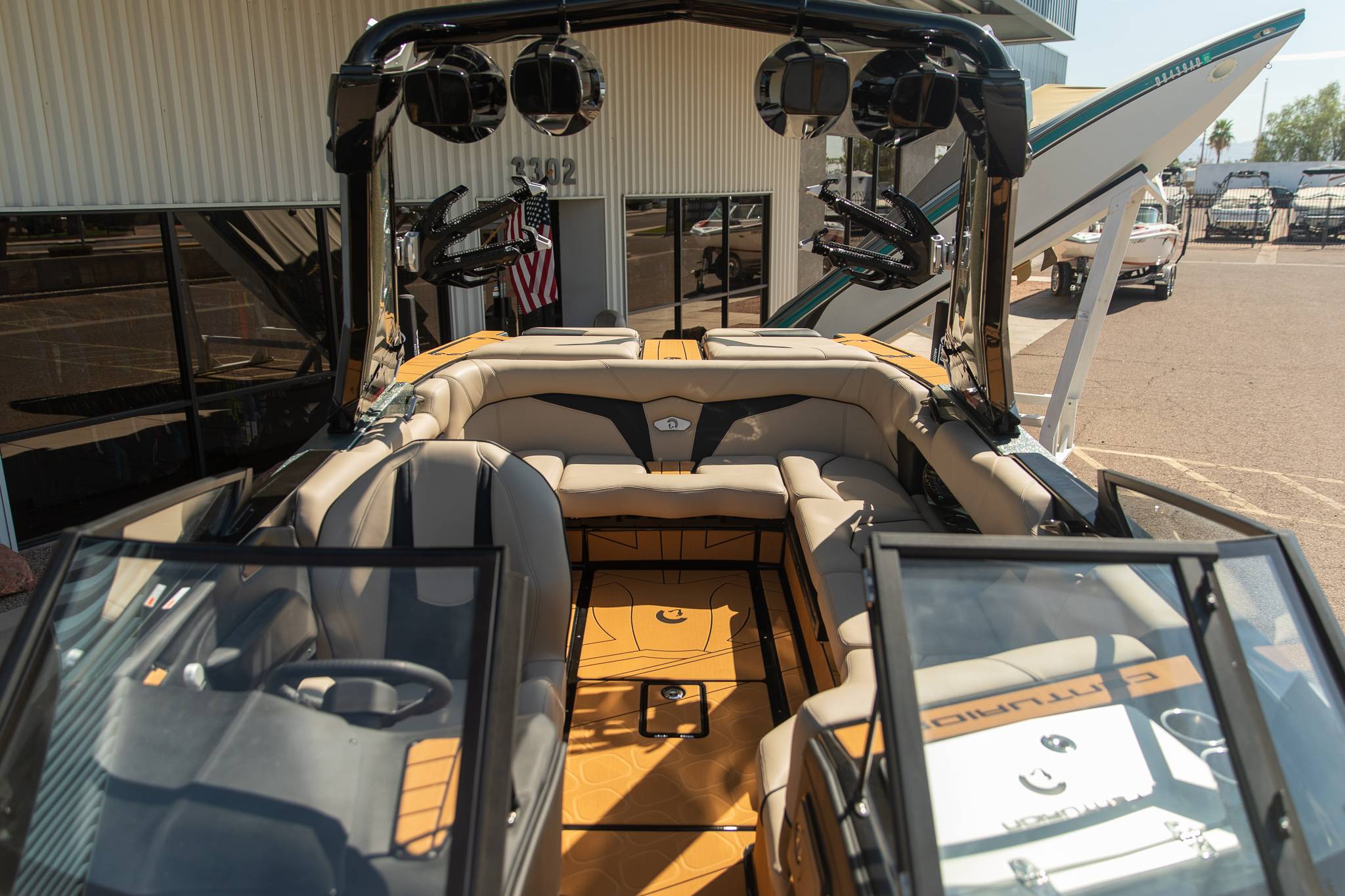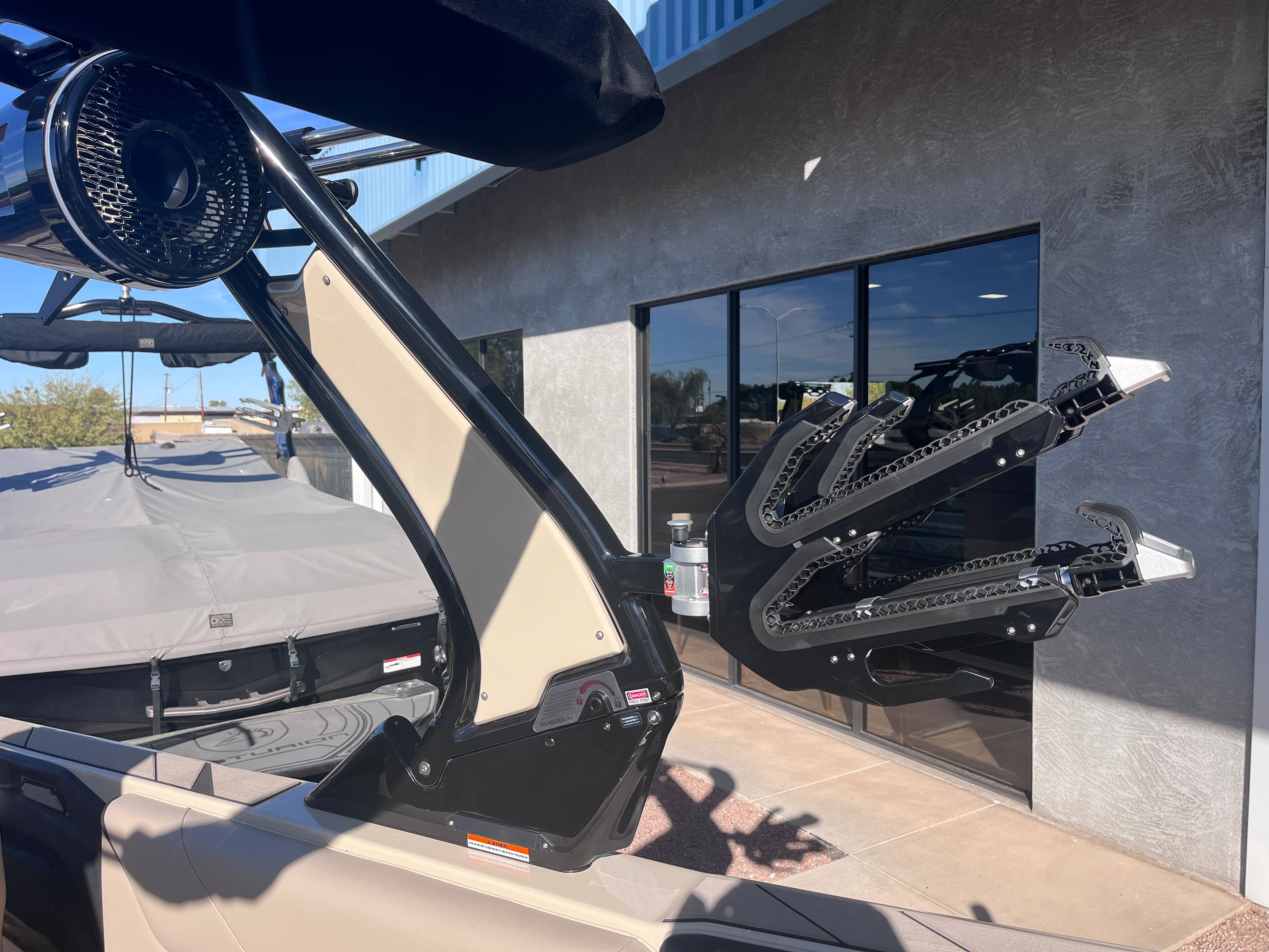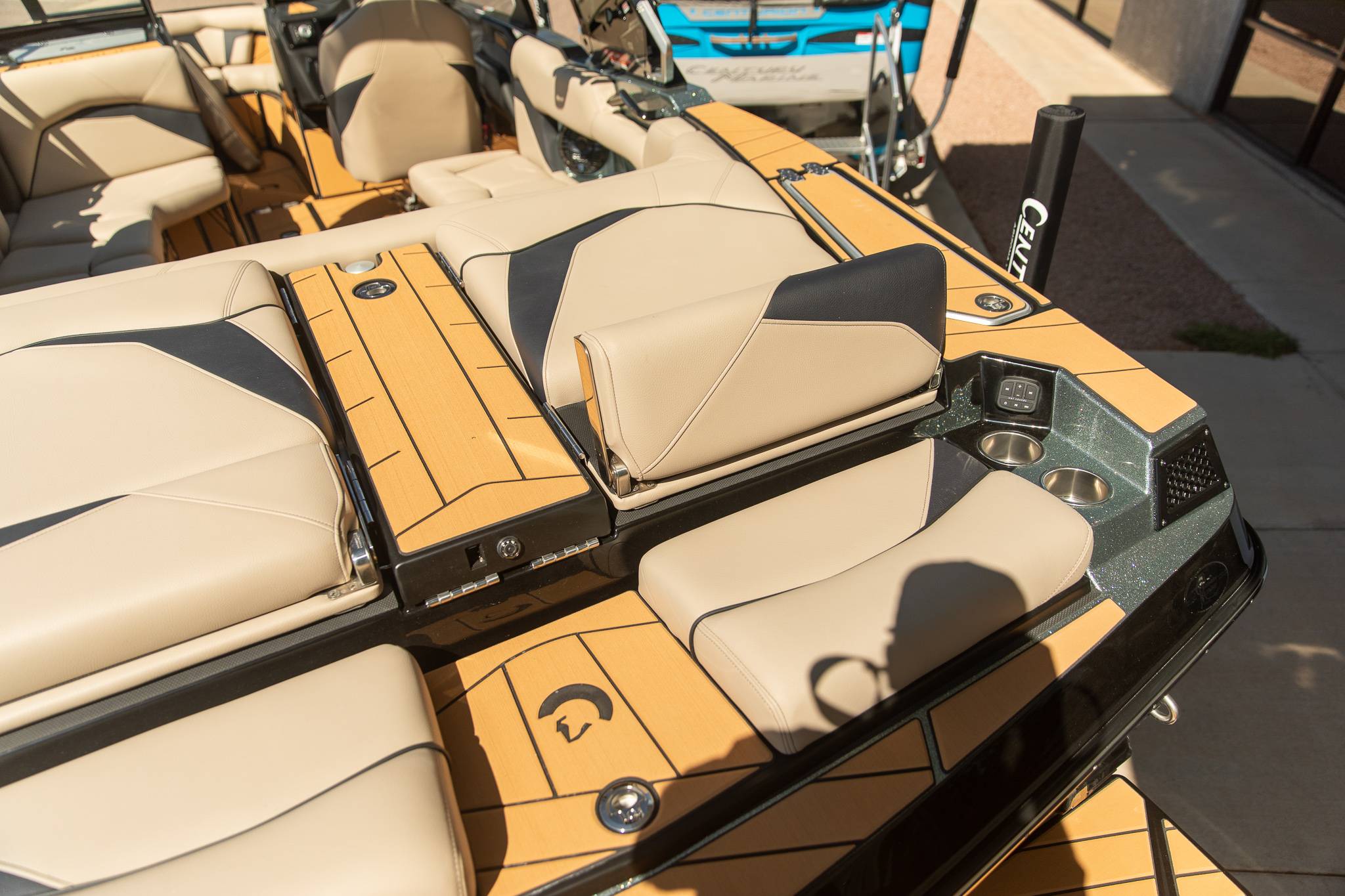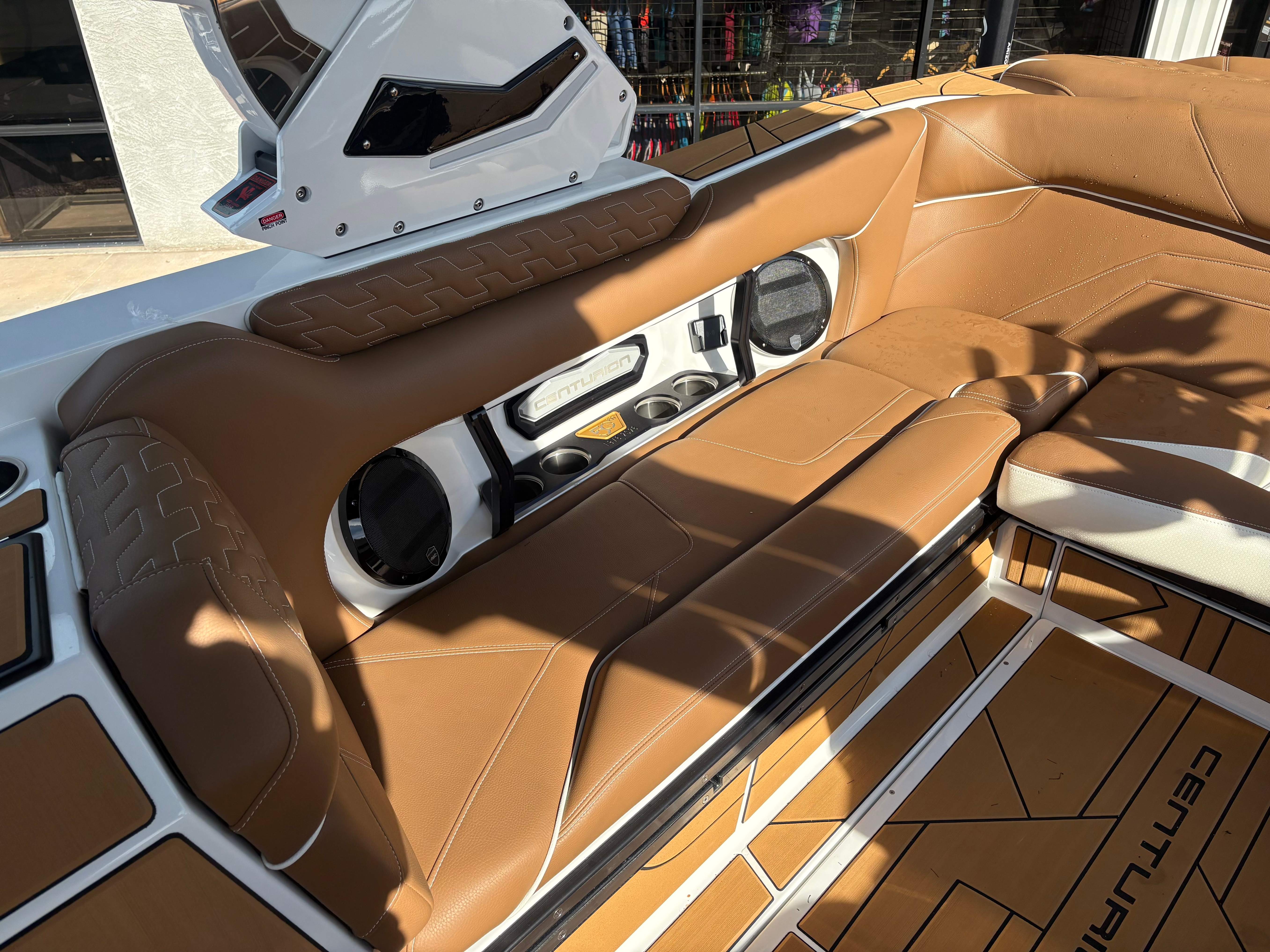 2026 Centurion Ri230 - Mocha/Mocha The Ri230 hits that sweet spot for the wake sports enthusiasts, whether professionals or beginners, seeking luxury in a 23-foot size. Its responsive handling, world-class waves, wakes, and ride are wrapped in comfort. Features: - Up to 5,400 LBS of ballast - Powered by PCM 6.2L ZZ6 - Predator Power folding Tower - Ram Fill 2.0 technology for rapid ballast filling and draining - Efficient fuel consumption with live fuel economy readouts - Transom Remote -Centurion CoverFire Sound System by Roswell - Bombshell 2.0 Strapless Board Racks - Bow and Transom Ballast Bags - All CoolTouch Vinyl - Interior and Underwater RGBW Lights -Front Boarding Ladder w/ Handrails GENERAL SPECS Length: 23' Beam: 102" Draft: 36” Factory Ballast: 5,400 lbs Fuel Capacity: 81 gal Weight: 5,500 lbs Weight on Trailer: 7,000 lbs Seating Capacity: 14 People + Max Ballast Century Marine : (480)-835-9134 3302 E Main St Mesa, AZ 85213
