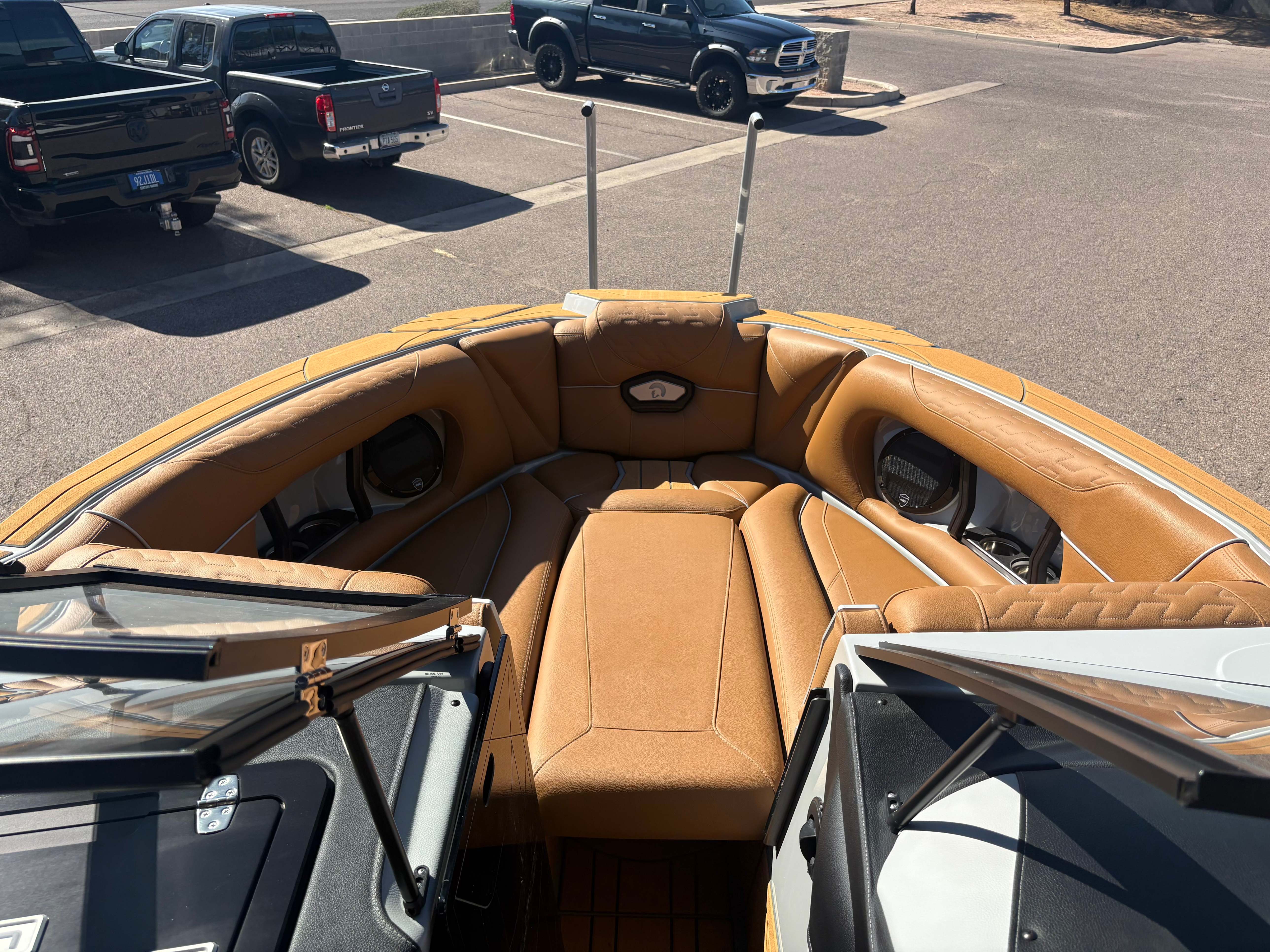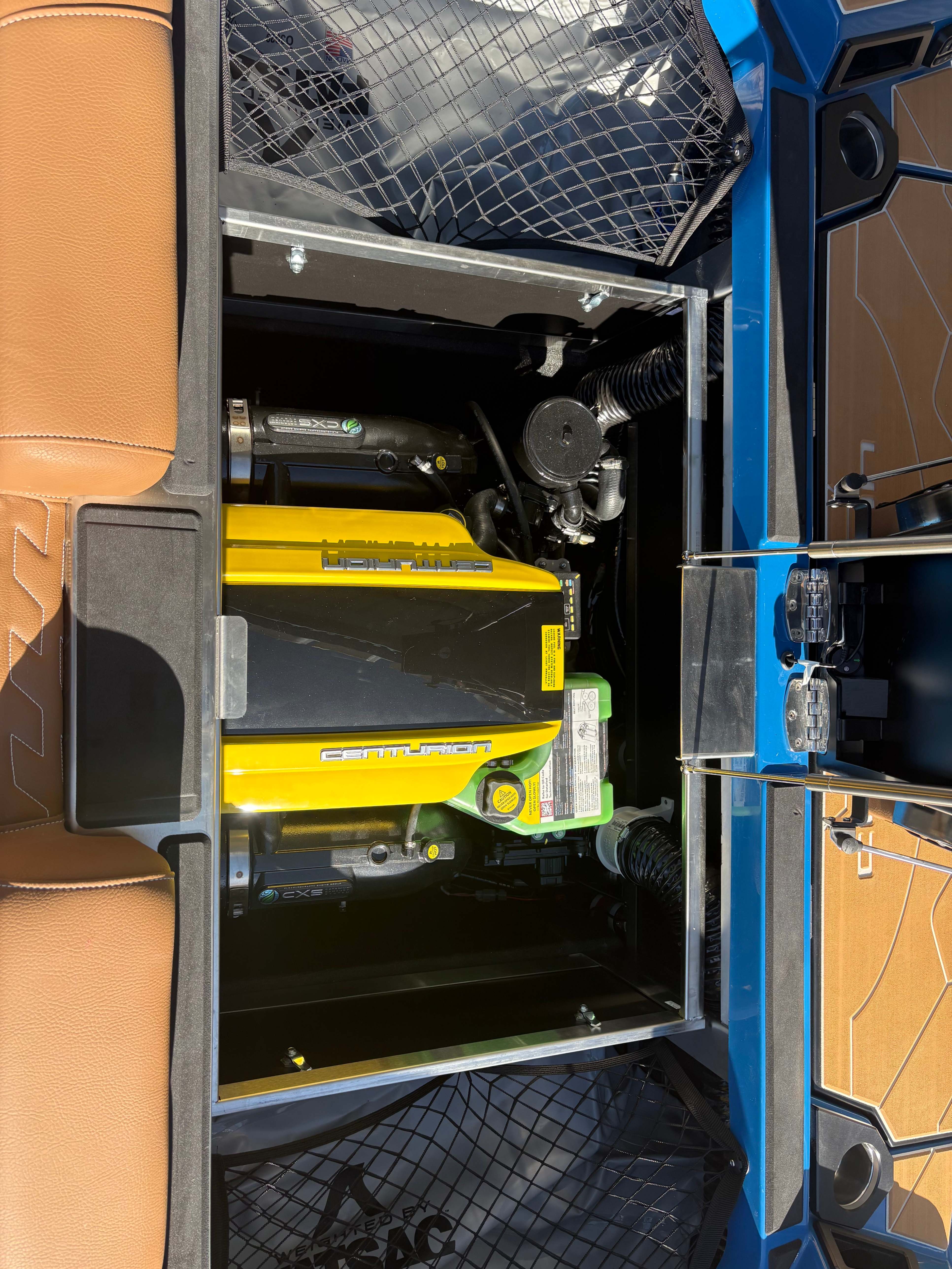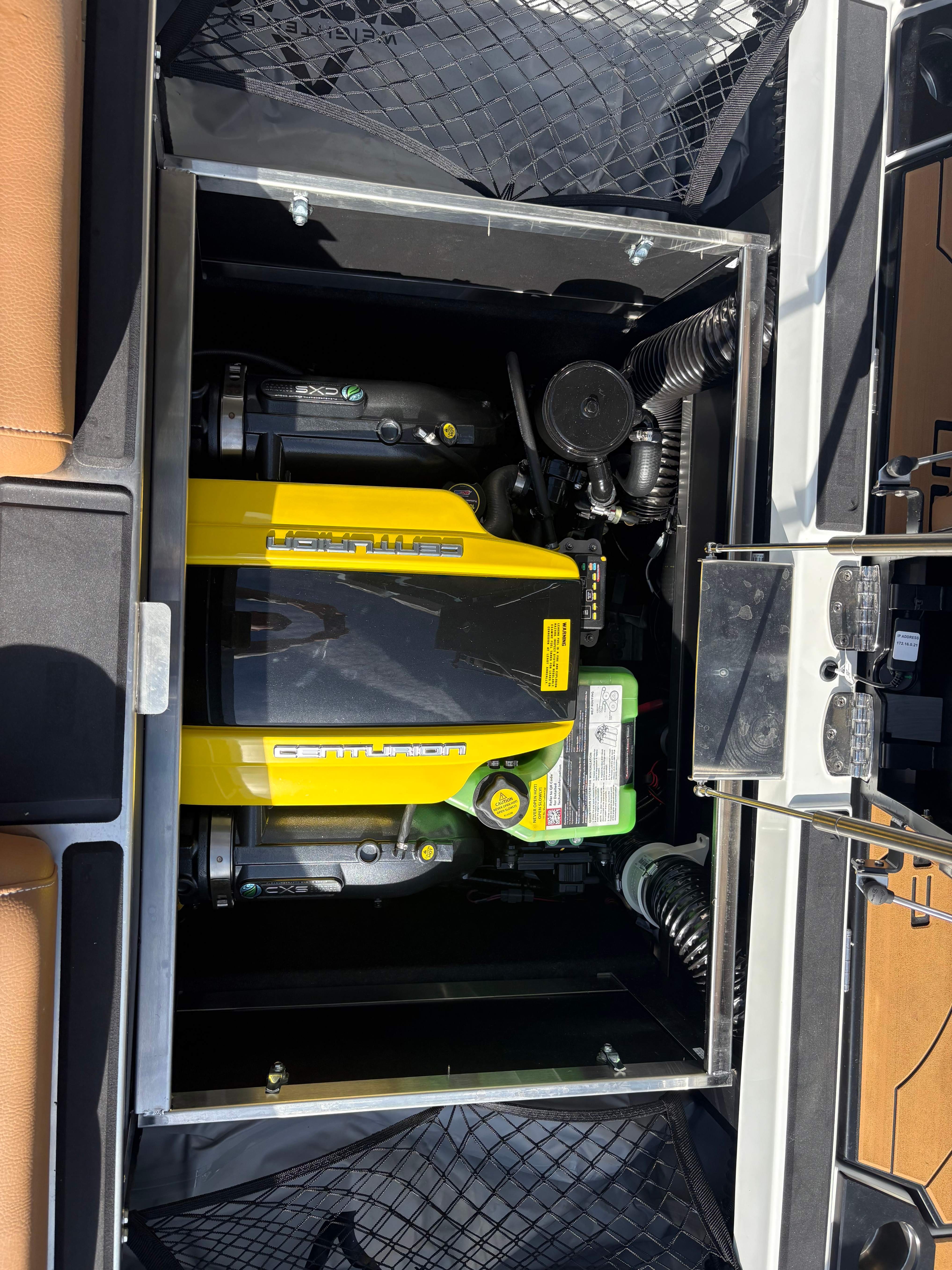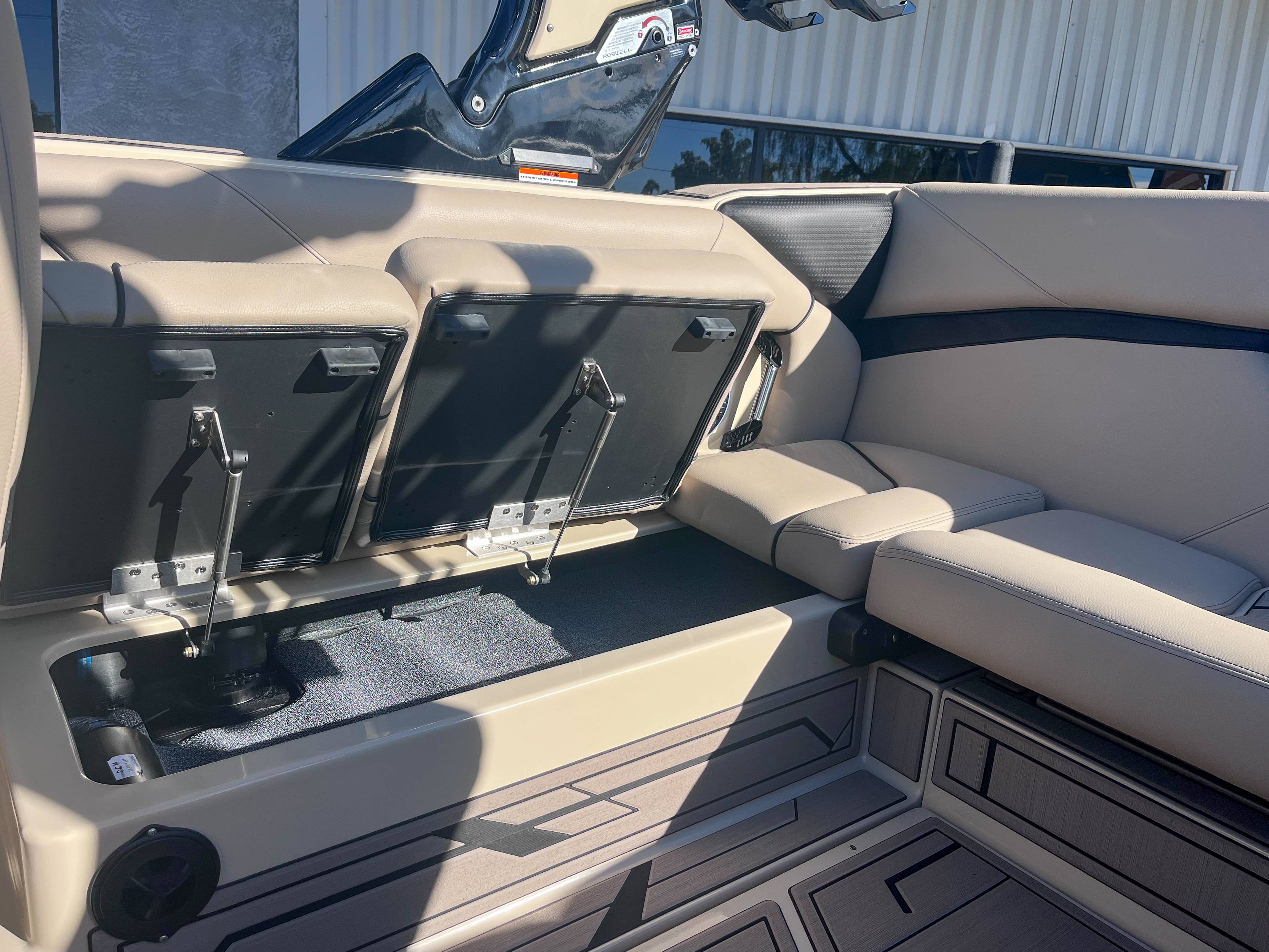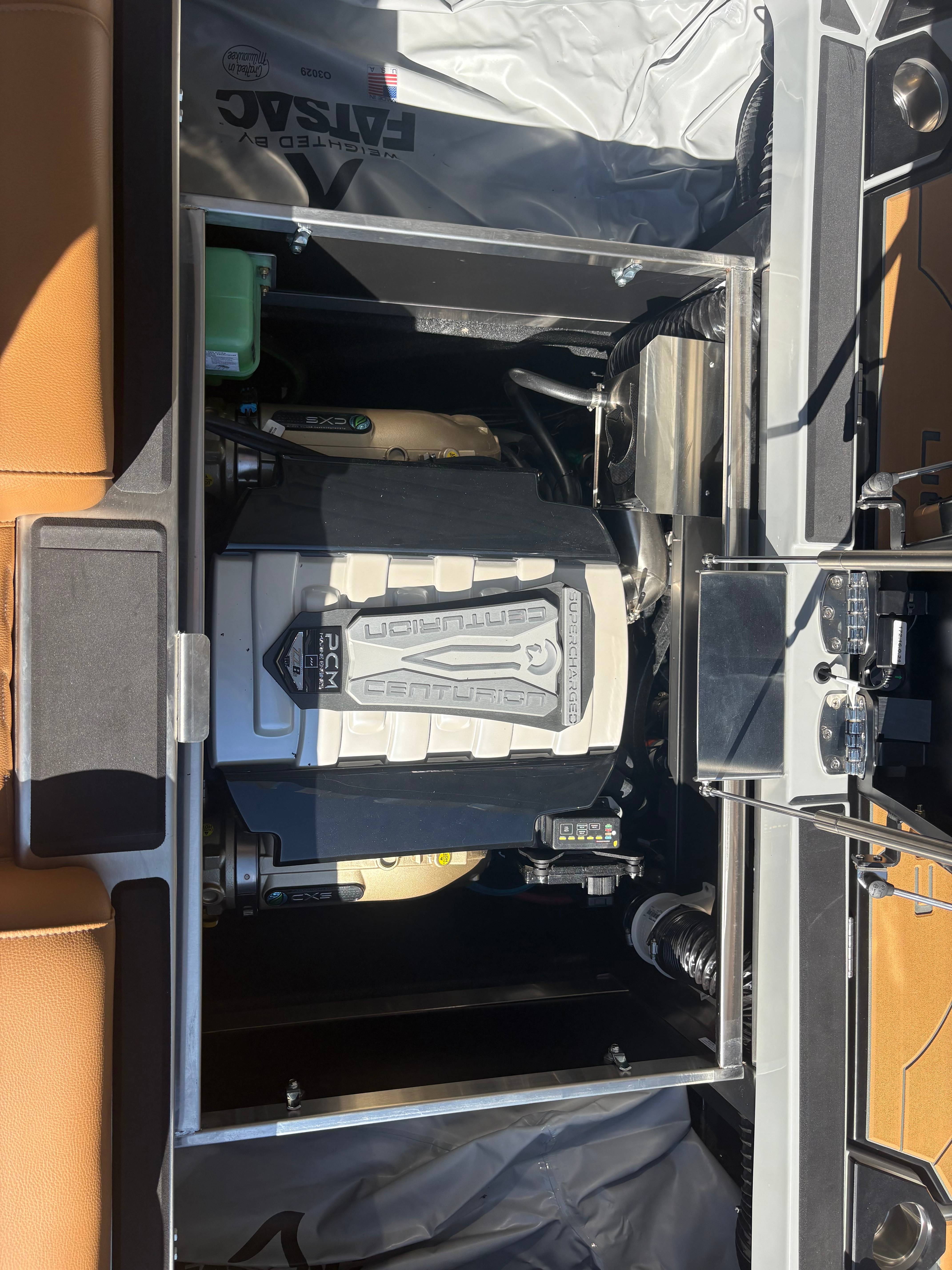 2026 Centurion NV243 - White/Saddle Brown The new NV series from Centurion empowers families to create lasting memories on the water. Centurion's answer to the call for attainable luxury in wake sports while still having the notable Opti-V 2.0 Hull. The NV is designed to have storage in mind. At the boat's transom, there is a wet locker to store things such as surf ropes, shoes, and other things you do not mind getting wet. Above the ballast bags, we have installed nets for additional storage for life vests, surfboards, and wakeboards. Features: -PCM ZZ6 6.2L -DropZone Auto Tower -Surge Thruster -Sewlong Bimini -RAMFILL -CoolTouch Vinyl -2 Wet Sound Speakers -Transom Remote -Bombshell 2.0 Boardracks -Rear Camera -Swimstep Ladder -Cobra Racing Driver’s Seat -Docking Lights -RGBW Interior Lights -Underwater Lights -Front Boarding Ladder GENERAL SPECS Length: 24' 3" Beam: 102" Draft: 36″ Ballast: 5,200 lbs. Weight: 5,995 lbs. Fuel Capacity: 70 Gal Seating: 16 + Max Ballast Century Marine : (480)-835-9134 3302 E Main St Mesa, AZ 85213