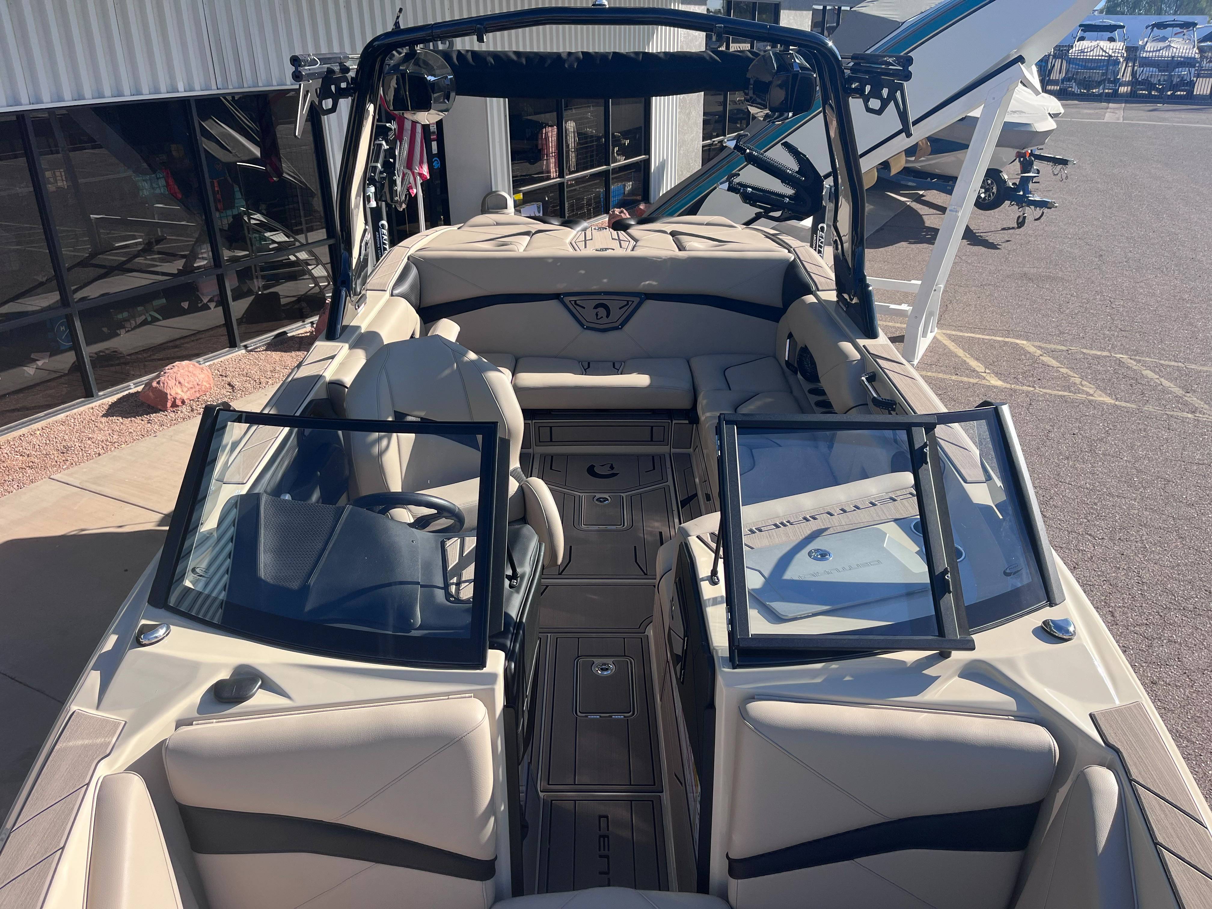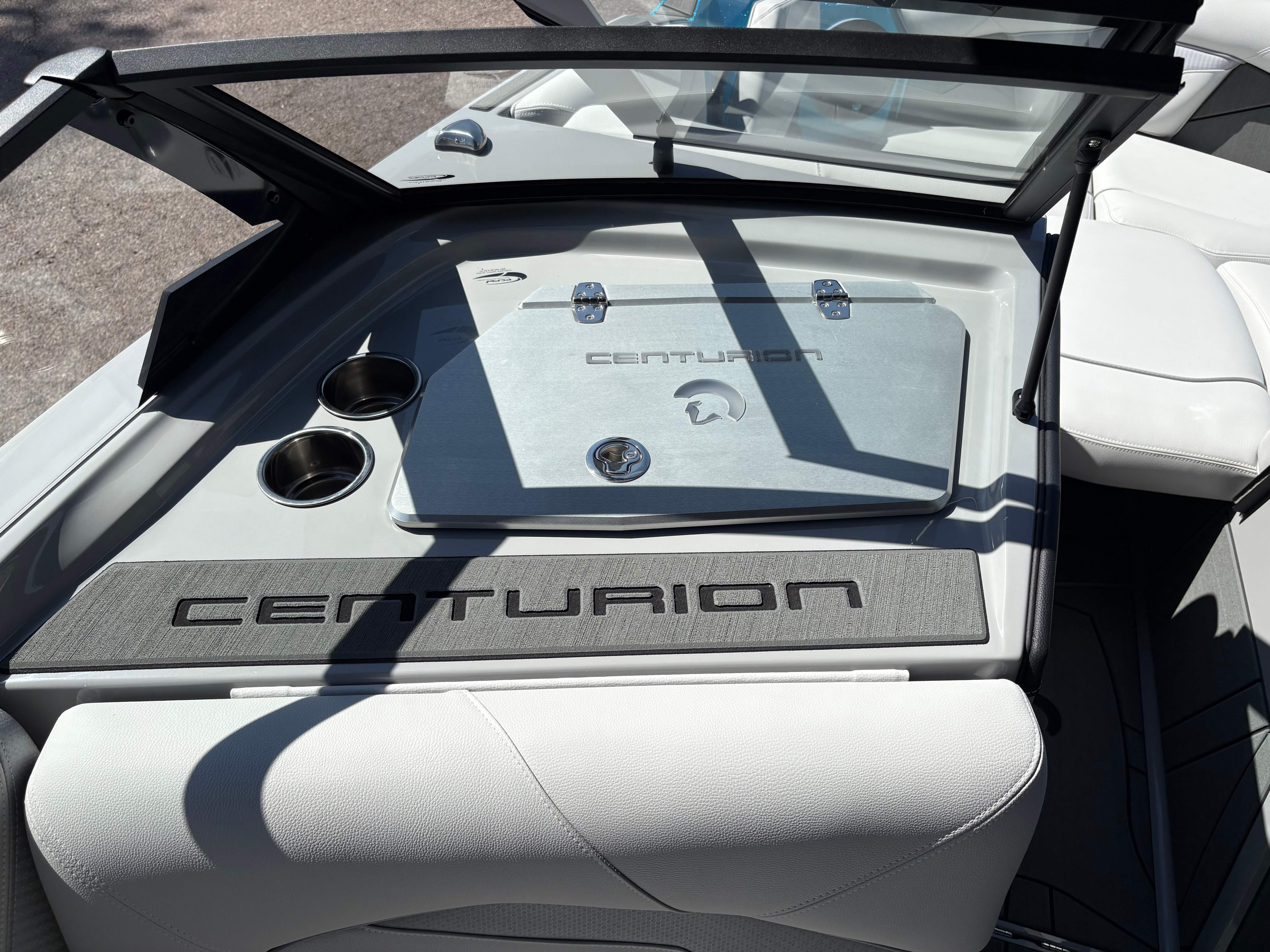 2026 Centurion Ri265 - Stone Grey/Castano The Centurion Ri265 – a 26.5’ water sports boat that will satisfy your need for luxury and performance. The combination of outstanding options and exceptional standard features define this flagship boat as the model for the most discerning buyers. Not only does it offer the best waves, wakes and ride, but its appeal goes well beyond water sports towing. Features: - 5,850 LBS of ballast - Powered by PCM ZZ8S - Predator Power folding Tower -CoolTouch Vinyl - Ram Fill 2.0 technology for rapid ballast filling and draining - Efficient fuel consumption with live fuel economy readouts - Transom Remote - Bombshell 2.0 Strapless Board Racks - Center Articulating Tracking Systems (CATS) - Flip Up Interior Port Stadium Seating - Swimstep Ladder - Power Adjusted Seat - Interior and Underwater RGBW Lights -Front Boarding Ladder GENERAL SPECS Length: 26.5' Beam: 102" Draft: 36” Factory Ballast: 5,850 lbs Fuel Capacity: 92 gal Weight: 6,400 lbs Weight on Trailer: 8,000 lbs Seating Capacity: Yacht Certified (Unlimited Capacity) Century Marine : (480)-835-9134 3302 E Main St Mesa, AZ 85213