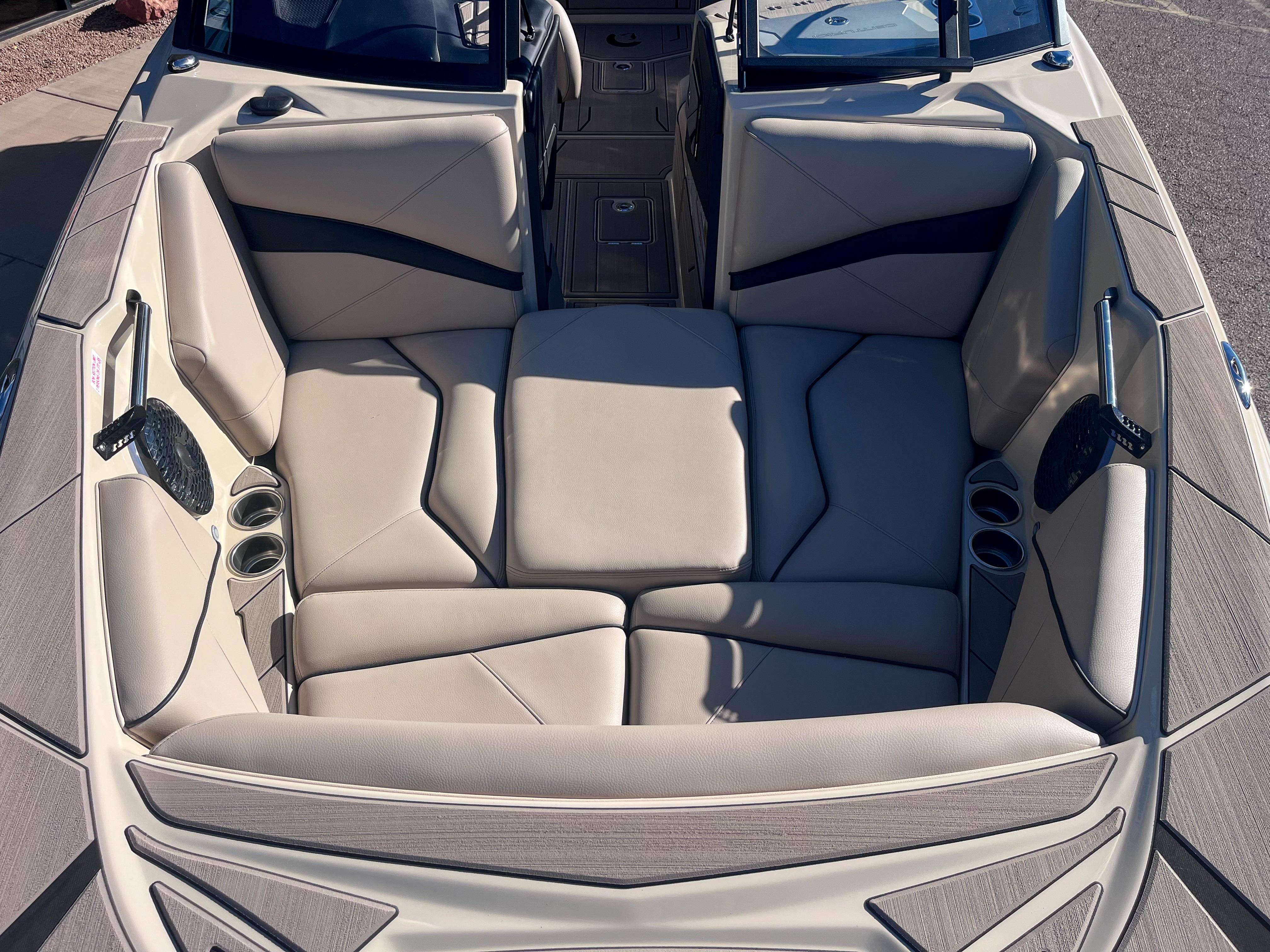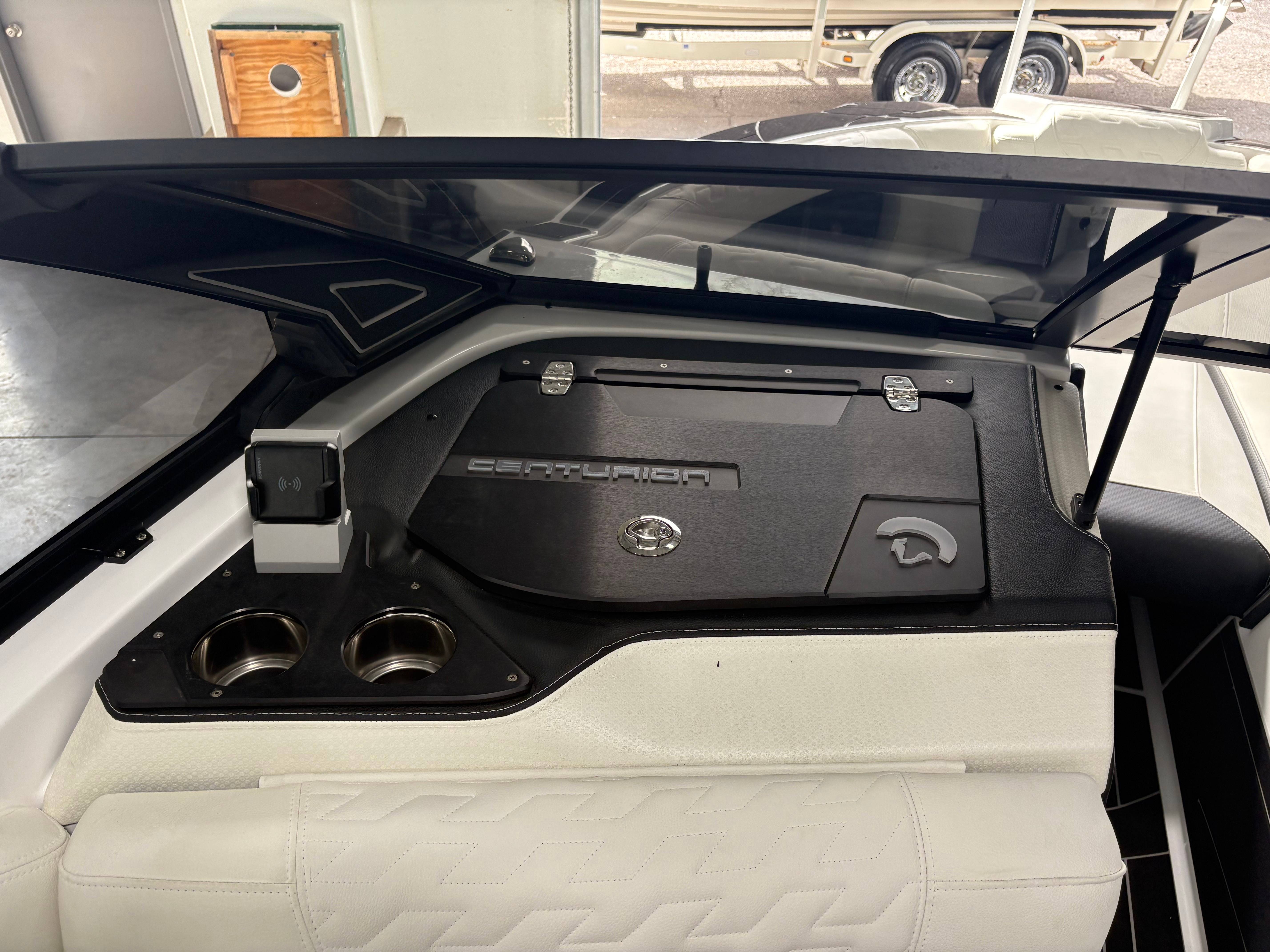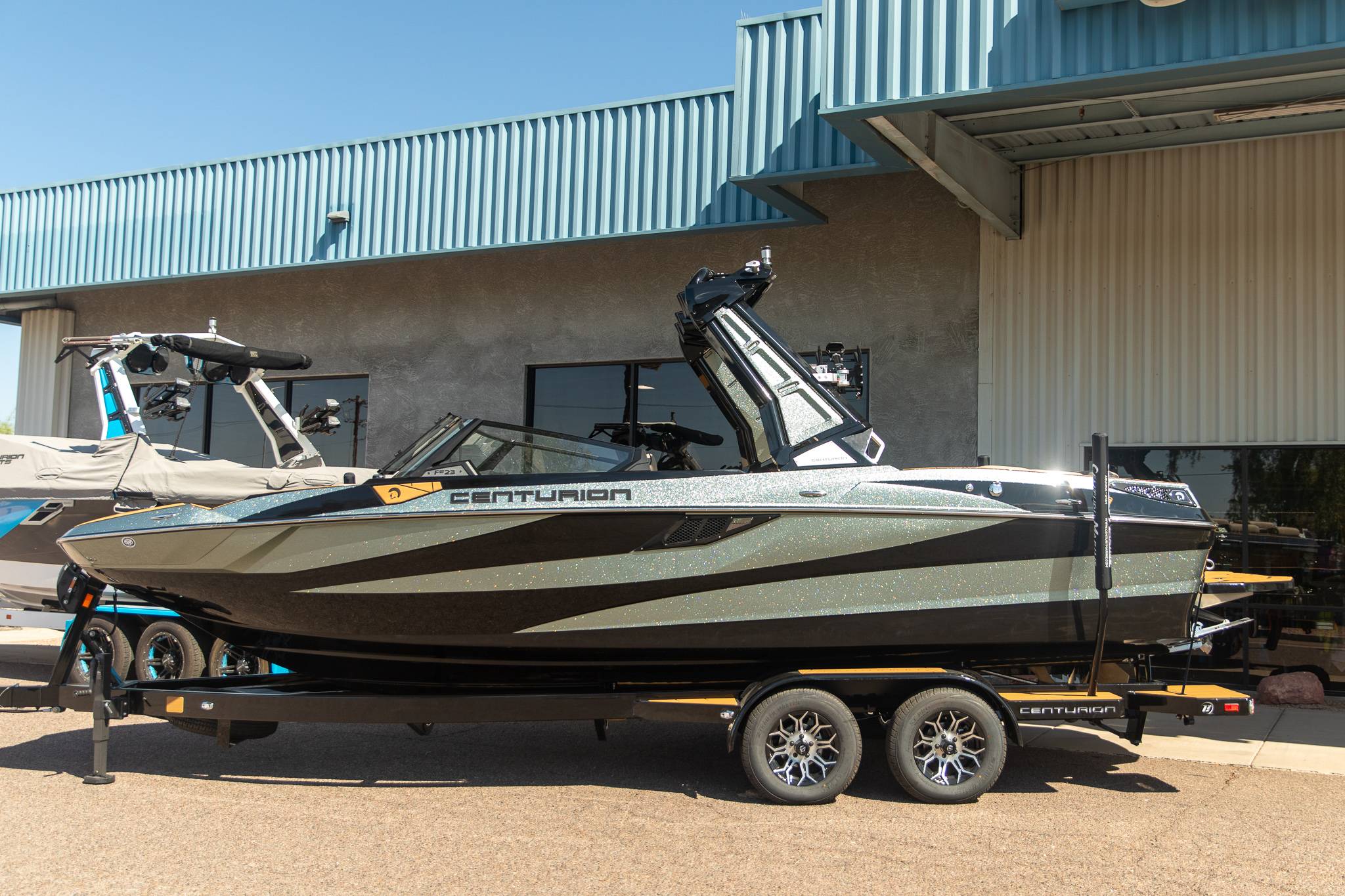 2026 Centurion Fe23 - Black/Olive Pewter Flake The 2026 Fe23 is the boat everyone will enjoy - Whether you're chasing podiums or just perfecting your carve. It's the ideal mix of size, power, and purpose, designed for both weekend warriors and wake sport contenders. Features: - Up to 5,250 LBS of ballast - Powered by PCM 6.2L ZZ6 - DropZone Auto Folding Tower - Ram Fill 2.0 technology for rapid ballast filling and draining - Efficient fuel consumption with live fuel economy readouts - Transom Remote - Bombshell 2.0 Strapless Board Racks - Flip Up Transom Seating - Bow Filler Cushion -Flip Up Interior Port Stadium Seating -Heater 3 Outlet W/ 2 Snorkels -Rear Camera - Bomshell 2.0 Strapless Boardracks GENERAL SPECS Length: 23' Beam: 102" Draft: 36” Factory Ballast: 5,250 lbs Fuel Capacity: 89 gal Weight: 5,300 lbs Weight on Trailer: 6,900 lbs Seating Capacity: 14 People + Max Ballast Century Marine : (480)-835-9134 3302 E Main St Mesa, AZ 85213