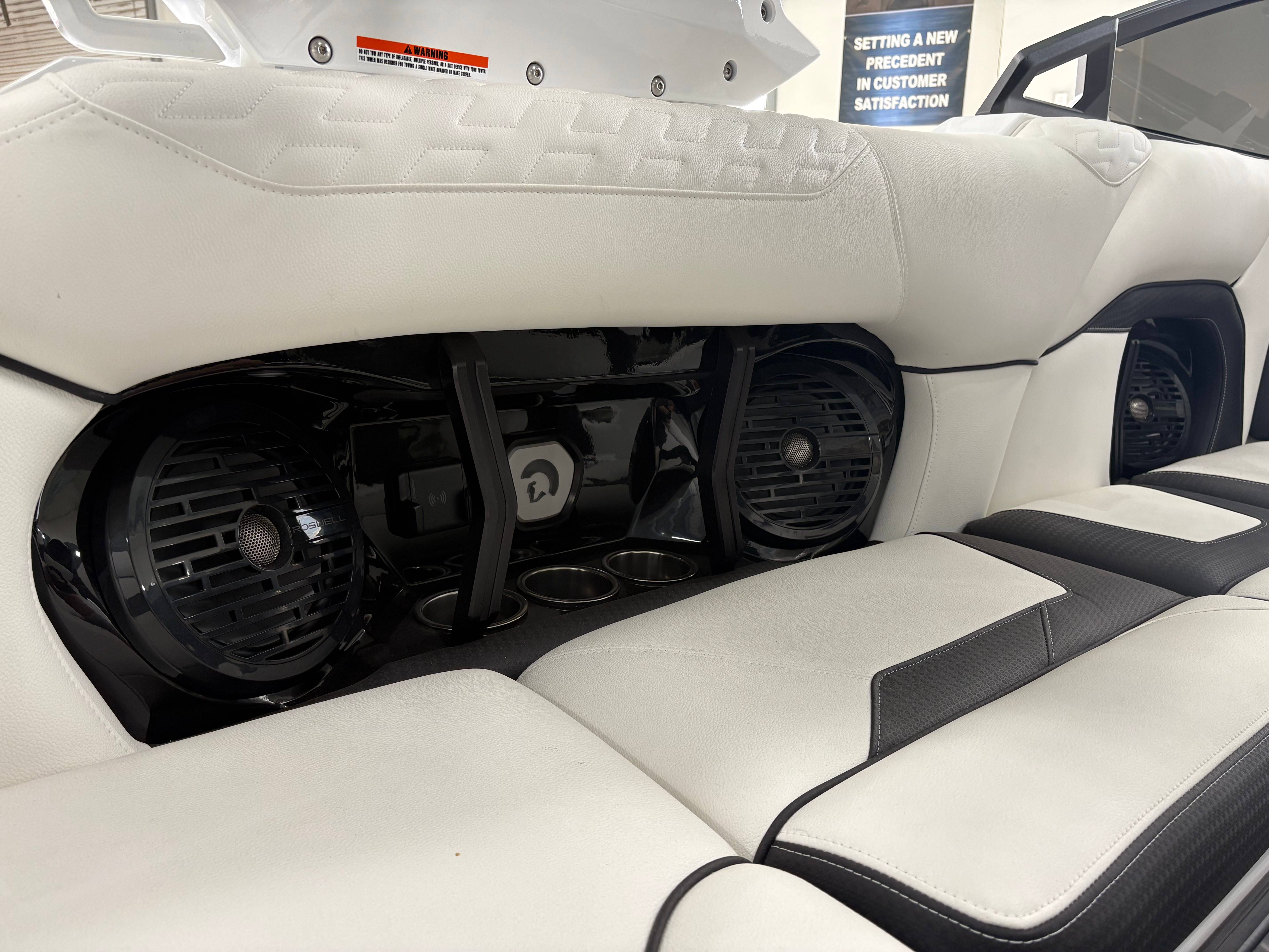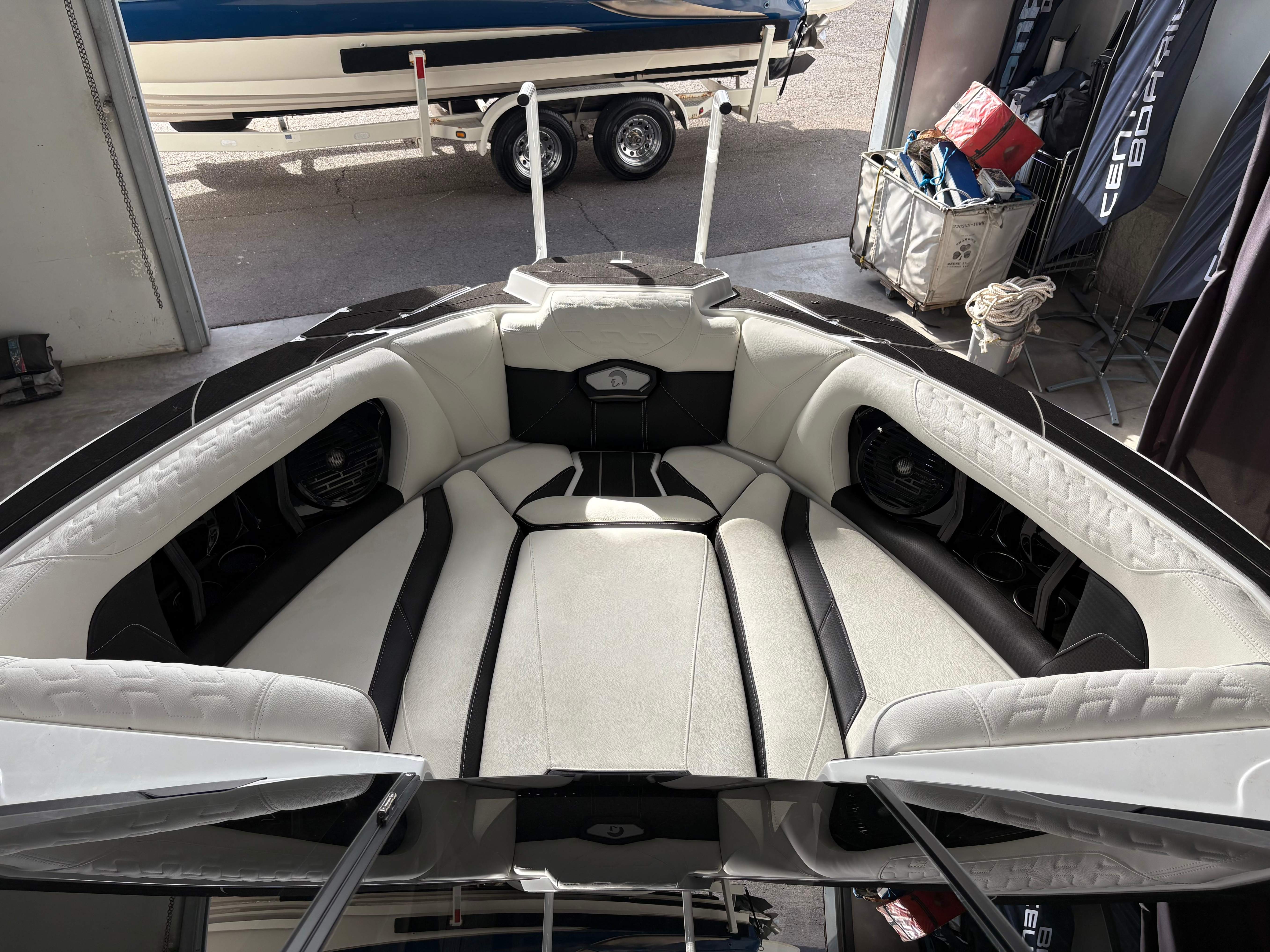 2025 Centurion Ri230 - White Frost The Ri230 hits that sweet spot for the wake sports enthusiasts, whether professionals or beginners, seeking luxury in a 23-foot size. Its responsive handling, world class waves, wakes and ride are wrapped in comfort. Features: - Up to 5,400 LBS of ballast - Powered by PCM ZZ5 5.3L - Predator Power folding Tower - Ram Fill 2.0 technology for rapid ballast filling and draining - Efficient fuel consumption with live fuel economy readouts - Transom Remote - Bombshell 2.0 Strapless Board Racks - Flip Up Interior Port Stadium Seating - Grizzly G40 40qt Ice Chest w/ Matching Gator Step - Interior and Underwater RGBW Lights -Front Boarding Ladder w/ Handrails GENERAL SPECS Length: 23' Beam: 102" Draft: 36” Factory Ballast: 5,400 lbs Fuel Capacity: 81 gal Weight: 5,500 lbs Weight on Trailer: 7,000 lbs Seating Capacity: 14 People + Max Ballast Century Marine : (480)-835-9134 3302 E Main St Mesa, AZ 85213
