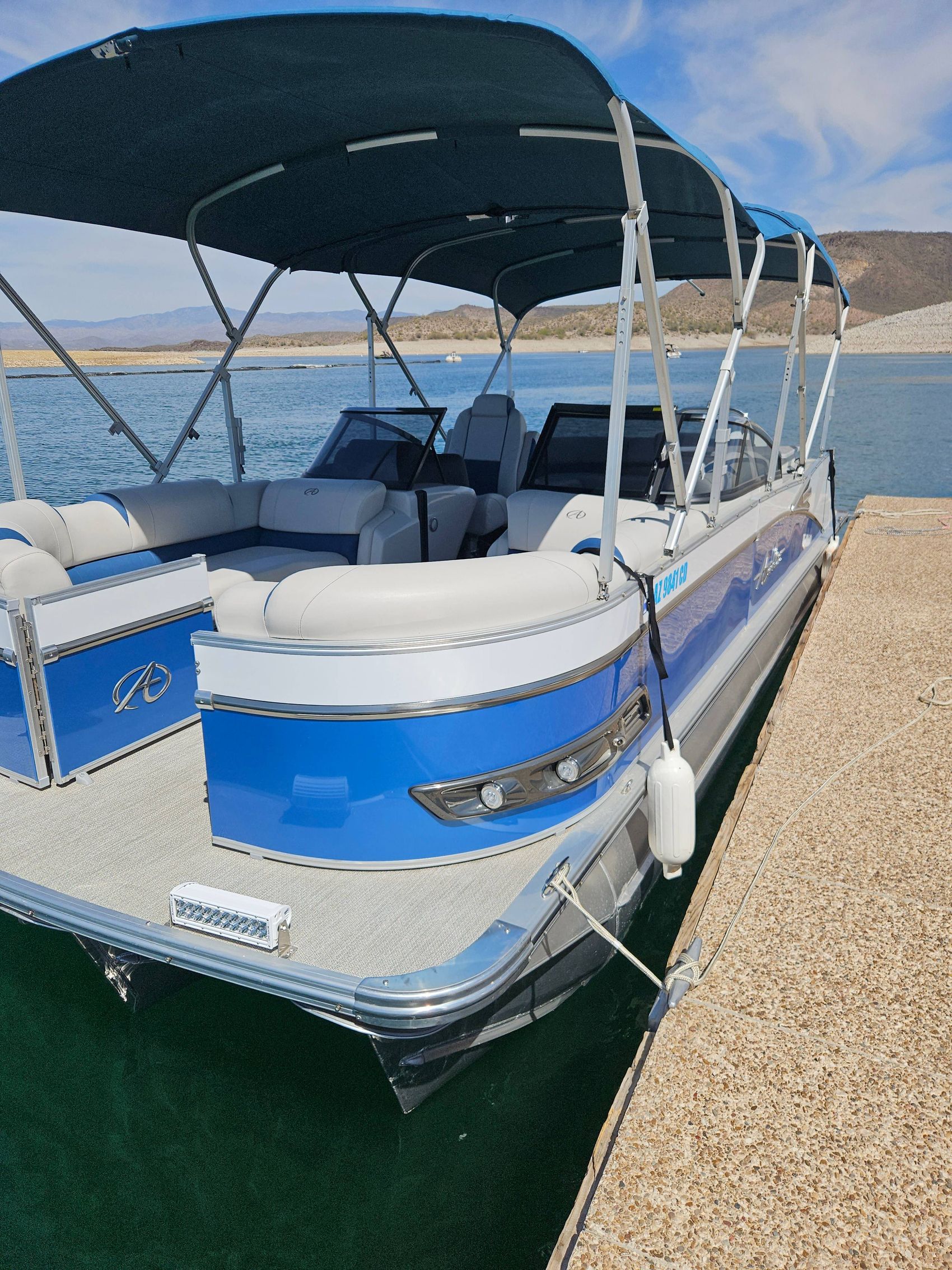 Imagine cruising through the scenic waters of Lake Pleasant, conveniently located within a short drive from Downtown Phoenix. This pontoon boat offers an ideal way to escape the city heat and enjoy Arizona's beautiful lake scenery.
