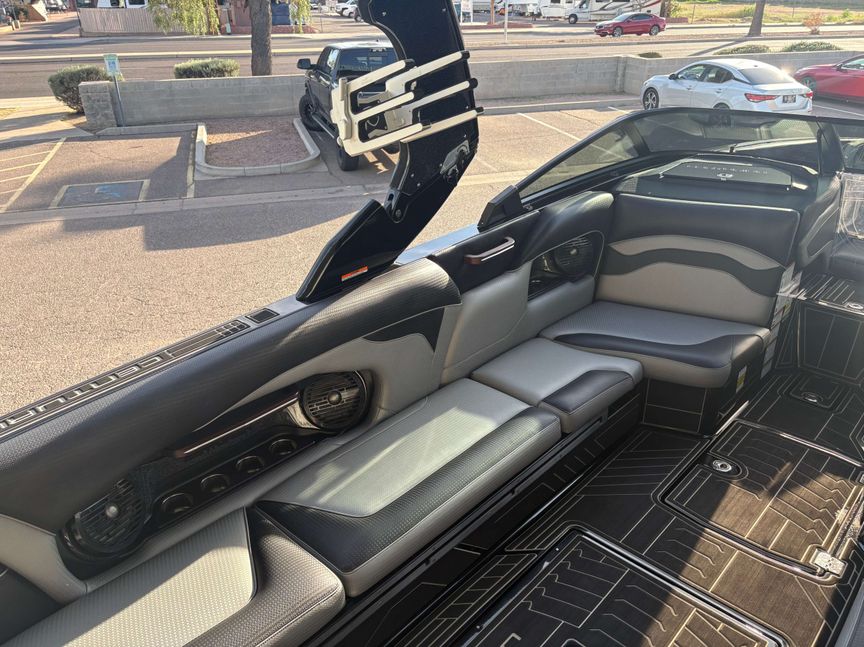 As the retail registered unit and market share leader in the 26-foot segment, the Centurion Ri257 continues to blow minds with the World’s best surf waves. This retail growth is thanks to a long wave with tons of push and a full spectrum of sweet spots from curl to face. This surfing phenomena is created by the Opti-V Hull, 5550 pounds of ballast, 7 specifically placed ballast locations and 90-second filling RAMFILL ballast. The Ri257 has all the advantages of a big boat in waves, wakes and ride with uniquely better handling and 50% more fuel efficiency.