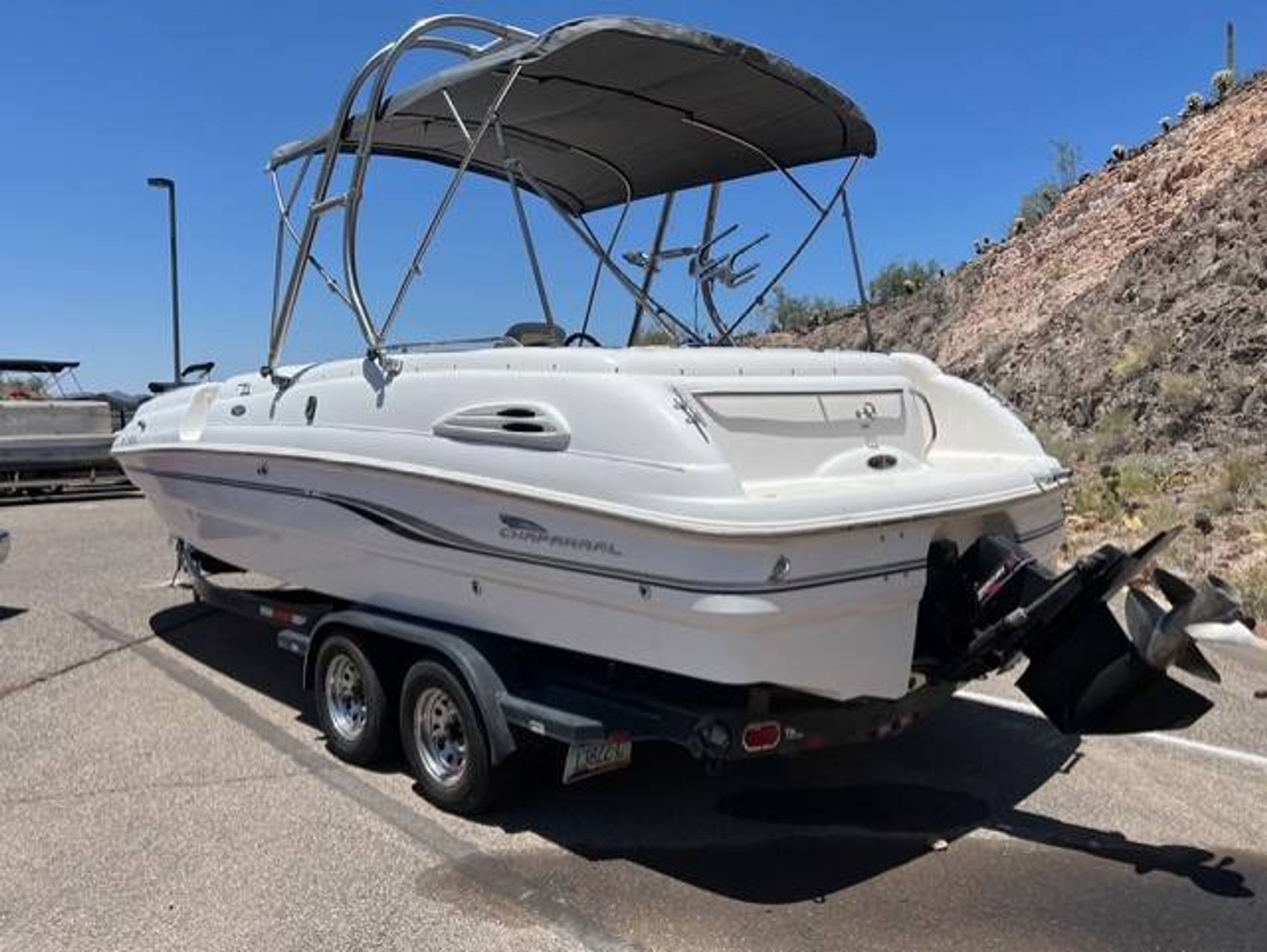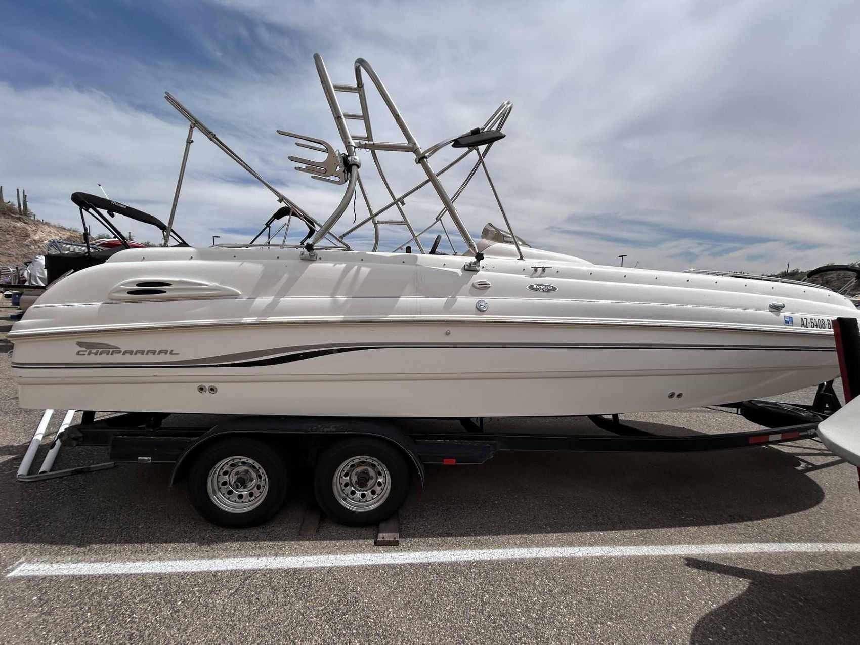 For sale is a 2000 Chapparal 252 Sunesta ski boat, perfect for water sports and family outings. This well-maintained boat is in good condition and features a new bimini top to provide shade and comfort on sunny days. Powered by a Mercruiser 5.7L inboard engine, it offers reliable performance for an enjoyable boating experience.
