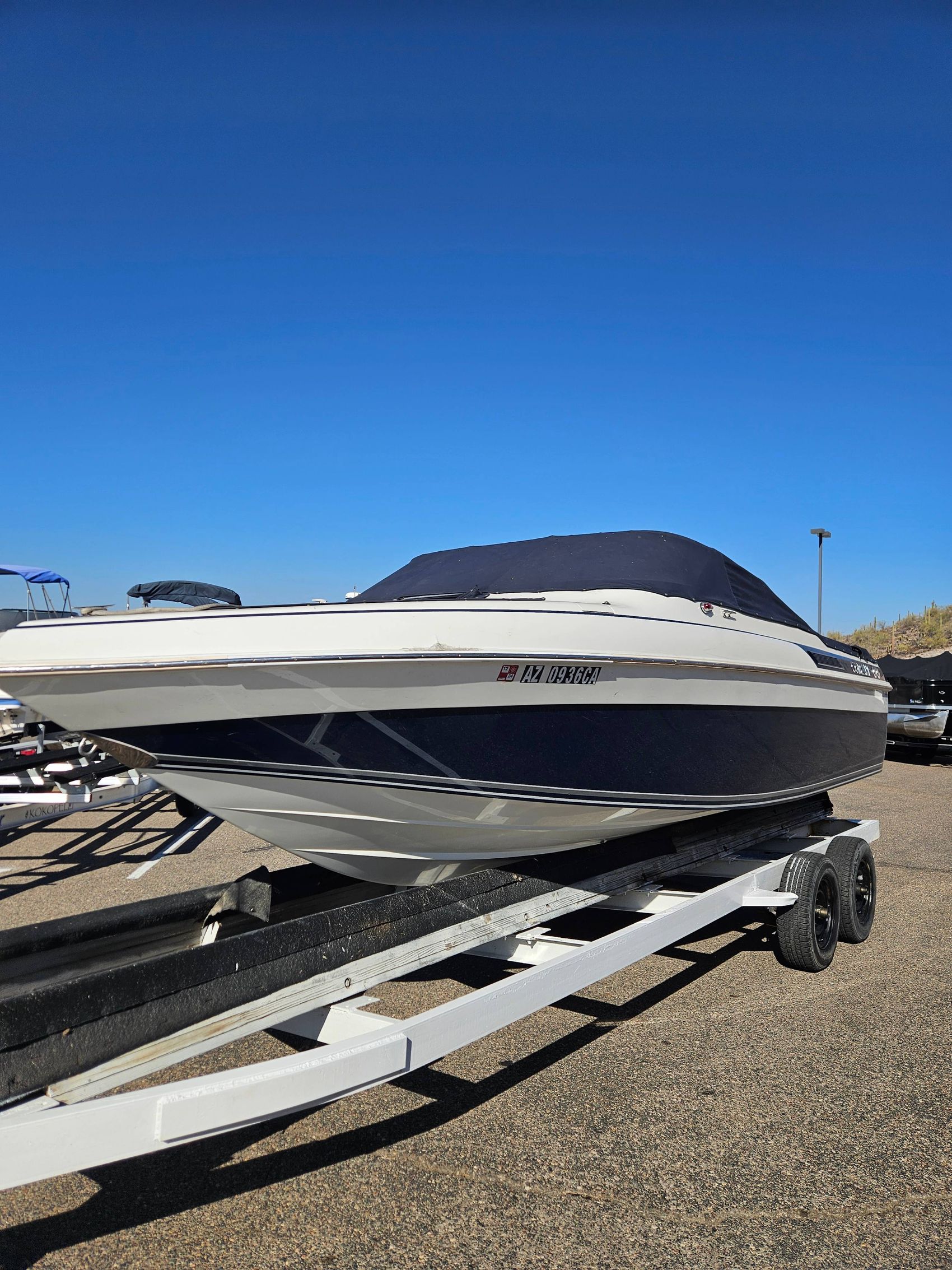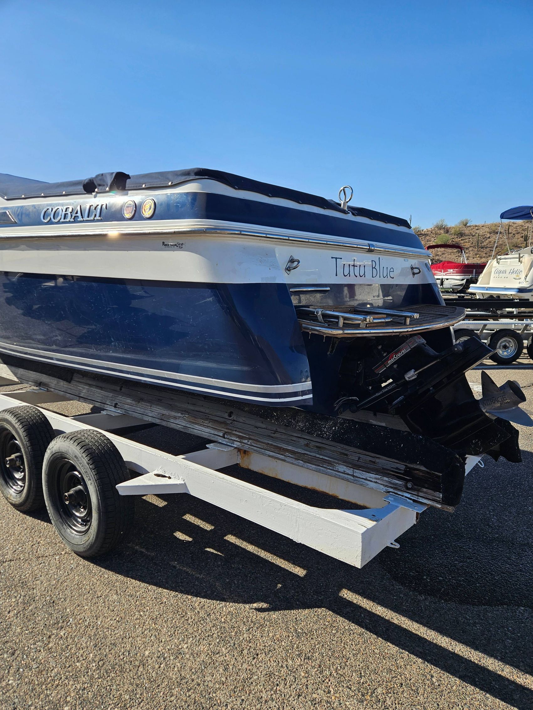 Powering this vessel is a robust Mercruiser 7.4LK engine, known for its strength and durability, offering a smooth and powerful ride. Designed for speed and comfort, this boat is perfect for those who enjoy spending time on the water, whether it's for leisurely cruises or thrilling adventures.