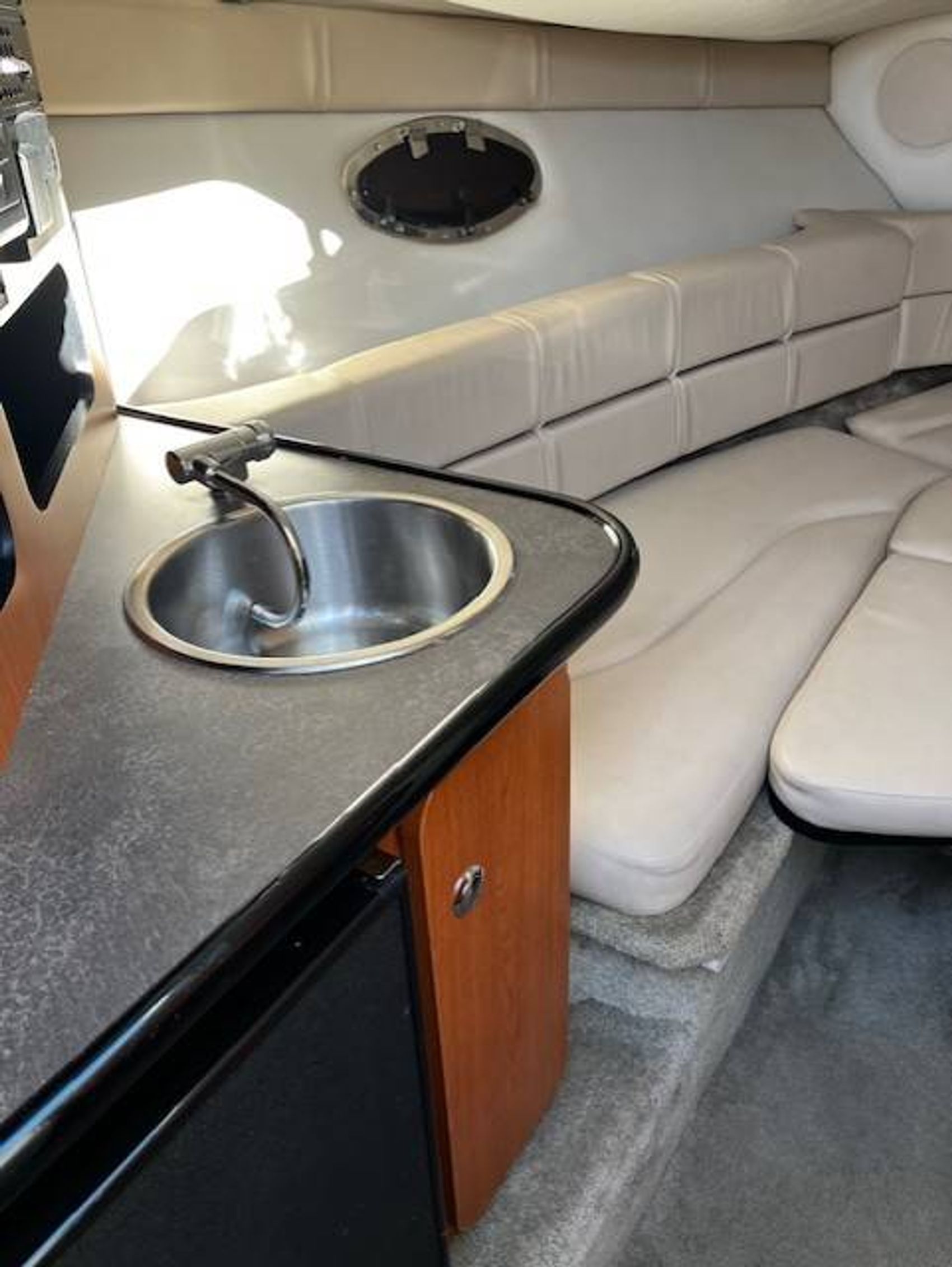 This well-maintained 27-foot Crownline 255CCR cabin cruiser offers excellent condition both inside and out. Powered by a Mercruiser 350 Bravo 111 engine, this boat delivers reliable performance and smooth handling. The hull is in great shape with a fresh gel coat, ensuring a clean and attractive appearance.