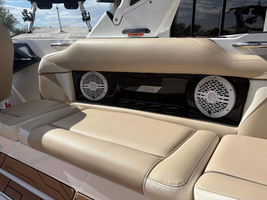 This Supreme S240, cloaked in a striking white and military green metallic flake, epitomizes the ultimate blend of power and grace in the surfboat realm. Its advanced EZ-V Hull, echoing the prowess of the Centurion Opti-V, guarantees a wakeboard wake of unparalleled symmetry and a surf wave that redefines excellence. Capable of hosting up to 16 adults with ease, this boat is outfitted with 4,600 lbs of factory-installed ballast, ensuring a premier surfing experience, regardless of the number of guests on board.