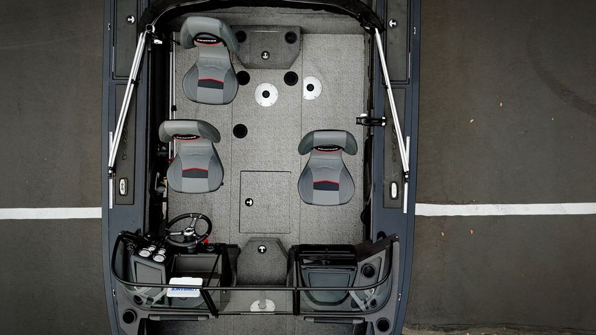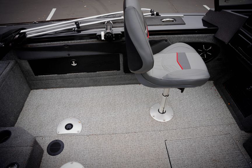 Fishing Features• Four pedestal fishing seats (move anywhere on deck) • 19-gal bow aerated livewell • 29-gal aft aerated livewell w/ recirc • Oversized in-floor rod locker (fits up to 8' rods) • Port & starboard rod lockers • Front & rear casting decks • Integrated tackle storage • Multiple dry storage compartments