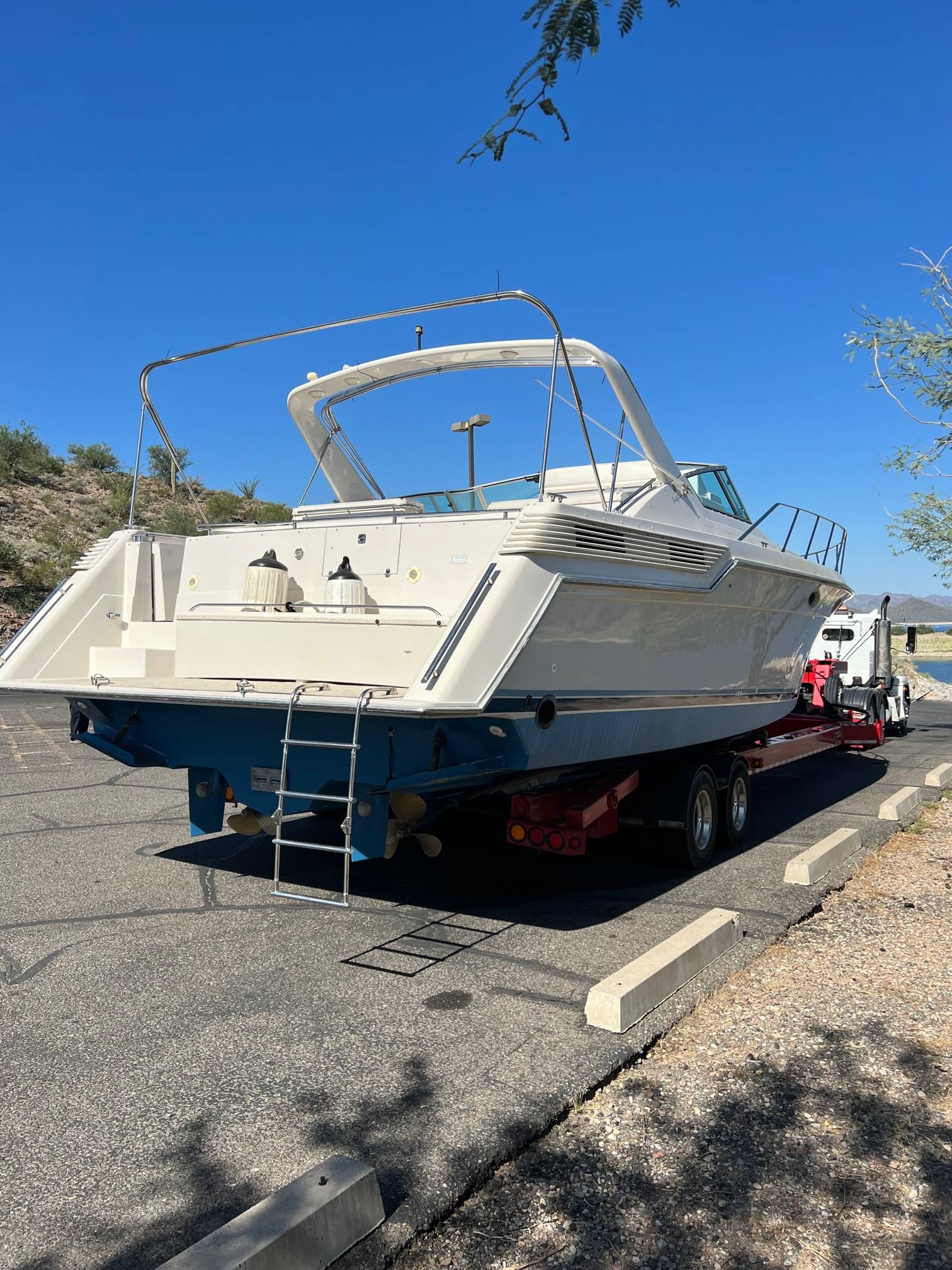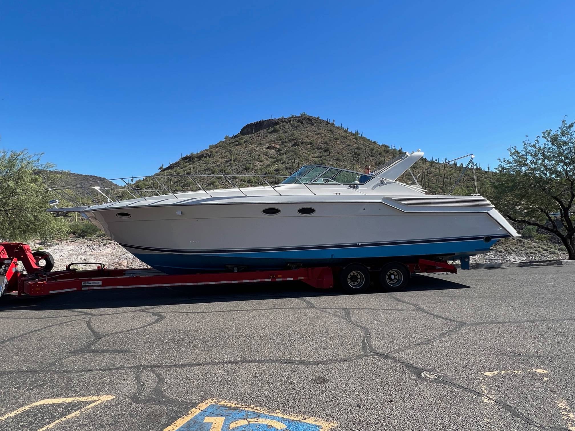 **Overview:** Experience luxury and performance with this immaculate 1991 Wellcraft Portofino. At 43 feet in length, this boat is designed for those who value both comfort and adventure on the water. With its extensive list of features, upgrades, and a carefully maintained condition, this boat is turn-key and ready for its next owner. **Specifications:** - **Year:** 1991 - **Make:** Wellcraft - **Model:** Portofino - **Length:** 43' - **Engines:** Twin 502 ci 365 HP Mercury Inboards - **Generator:** 8KW Westerbeke - **Sleeping Capacity:** Sleeps 6 comfortably **Features & Upgrades:** - **Air Conditioning:** Triple marine A/C units to keep you cool in the warmest weather. - **Sleeping Quarters:** Spacious and comfortably sleeps six. - **Head:** Large head with full-size shower and ample freshwater storage. - **Galley:** Full galley equipped with microwave, refrigerator, stove, and two new flat screen TVs. - **Interior:** Brand new Berber marine-grade carpet for a stylish and durable finish. - **Exterior:** All new extended Bimini top and a full cockpit cover, ensuring protection and longevity. - **Maintenance:** New bottom paint, engine tune-ups, and full service completed ensuring it’s in peak condition. - **Batteries:** Equipped with all new top-quality Odyssey batteries. **Condition:** This Wellcraft Portofino has been meticulously maintained and has undergone a full service. It is in excellent condition with no known issues or maintenance needs, assuring peace of mind for the next owner. This boat is truly turn-key – all it needs is a new owner to take the helm and enjoy! For more information, additional photos, or to schedule a viewing, please contact us. This Wellcraft Portofino won’t last long at this price – act fast and make it yours today! Century Marine carries an outstanding selection of New and preowned boats including; Centurion, Regal, Supreme, Veranda, Sea Ray, Chaparral, Rinker, Malibu, Maxum, Sleekcraft, Cobalt, Mastercraft and Carver. We carry pontoon boats, cruisers, wakeboard boats, ski boats, jet skis, houseboats and sailboats. Let our years of experience help if you on your next boat purchase. If you have questions on the sales programs or financing options, please give us a call. We would love to meet with you and see how we can assist you in your boating or RV needs. Century Marine at Lake Pleasant Harbor is located 35 miles northwest of downtown Phoenix, on the southeastern shores of Lake Pleasant.